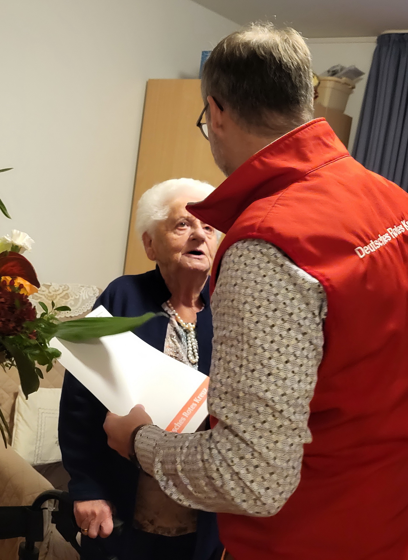 Weitere verdiente und langjährige Mitglieder des Roten Kreuzes in Mechernich waren unlängst in der Jahreshauptversammlung geehrt worden. Sibille Sennerich kann aus gesundheitlichen Gründen nicht mehr an solchen öffentlichen Veranstaltungen teilnehmen. Deshalb besuchten Ortsvereinsvorsitzender Rolf Klöcker, sein Stellvertreter Manfred Lang und Bereitschaftsleiter Sascha Suijkerland sie gemeinsam im Barbarahof, wo sie ihren Lebensabend verbringt.