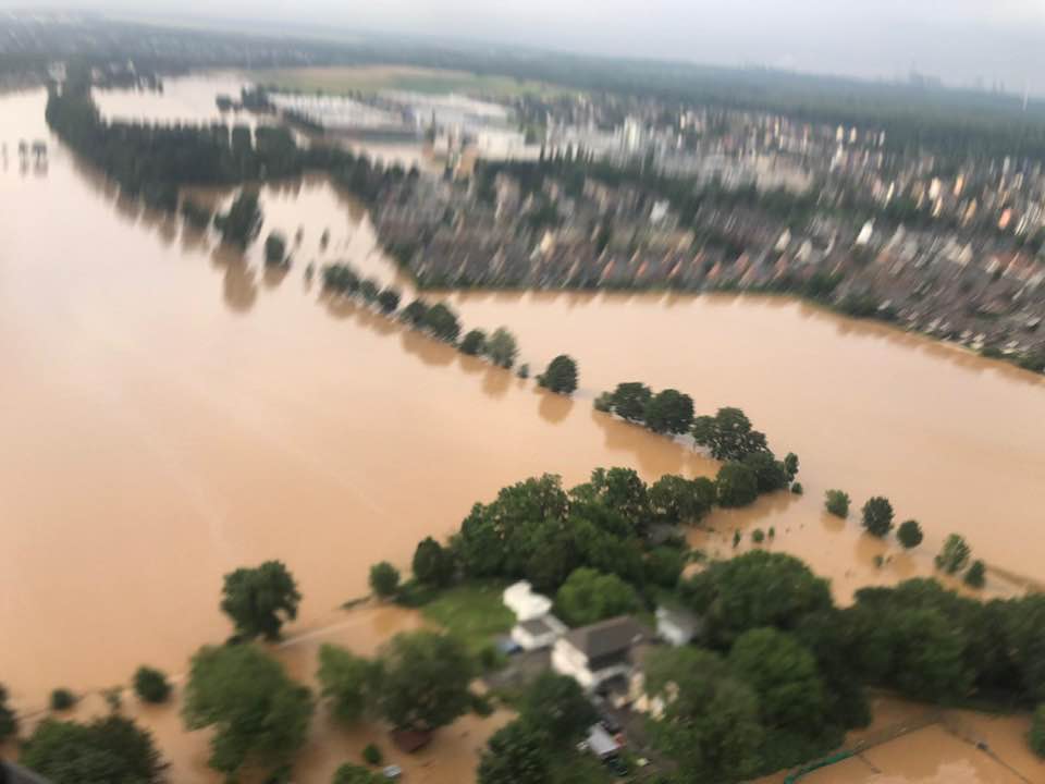 In Erftstadt, helicopters were used to evacuate a hospital trapped by flood waters. In the process, around 40 affected people were also pulled to the helicopter with the winch by the air rescuers of the Red Cross mountain rescue team and brought to safety.