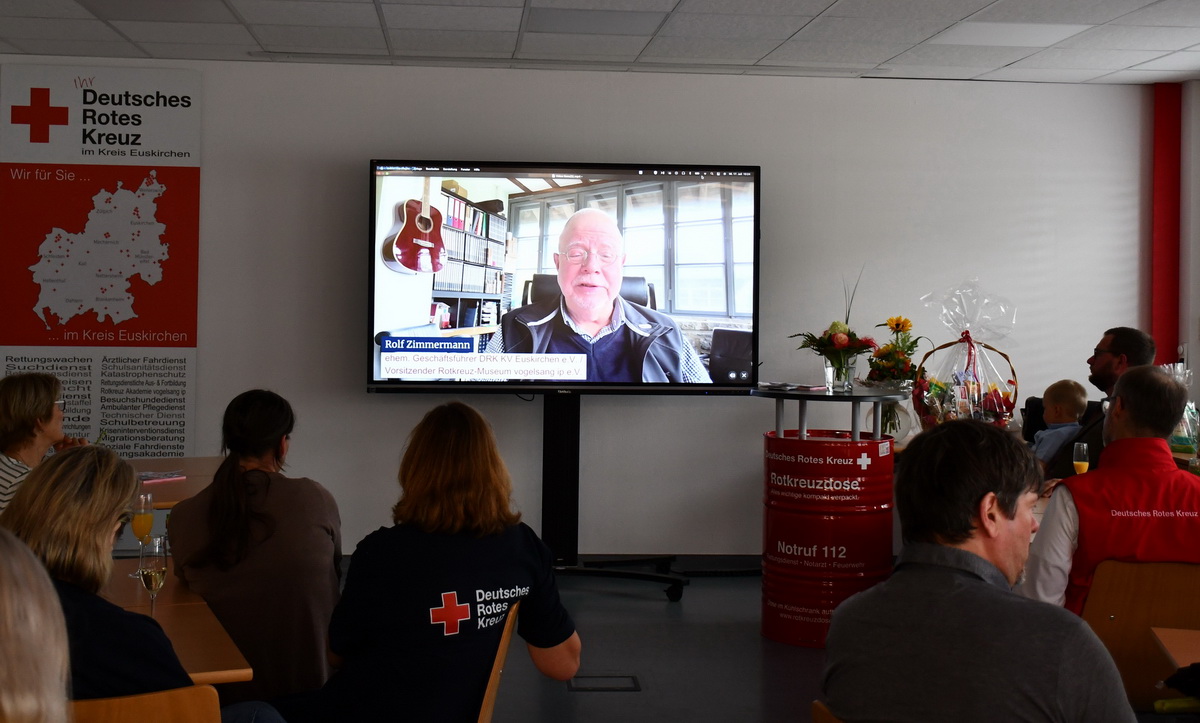 Die Kollegen hatten für die scheidende Rotkreuzfrau aus Dürscheven auch einen Abschiedsfilm gedreht, in dem viele zu Wort kamen, vor allem Ex-Geschäftsführer und Museumsleiter Rolf Zimmermann, der sich bei Ilona Raabe persönlich dafür bedankte, dass sie mit ihm der Bildungsarbeit des Roten Kreuzes im Kreis Euskirchen so entschieden den Stempel aufgedrückt hätten: „Danke für unser gemeinsames Lebenswerk!“