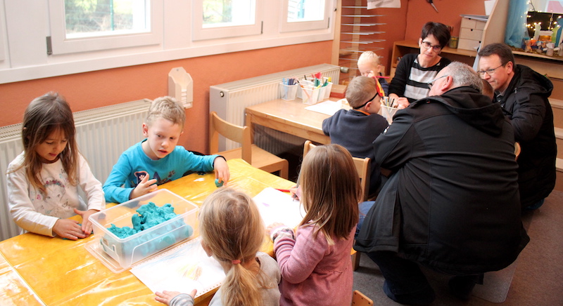 Zum Dank sangen die Knirpse zwei Lieder – und zwar zum Teil auch in Gebärdensprache, denn die wird im Schönauer Kindergarten gelehrt, weil einige der Kinder nicht sprechen können und natürlich nicht ausgeschlossen werden aus dem normalen Kindergartenalltag.