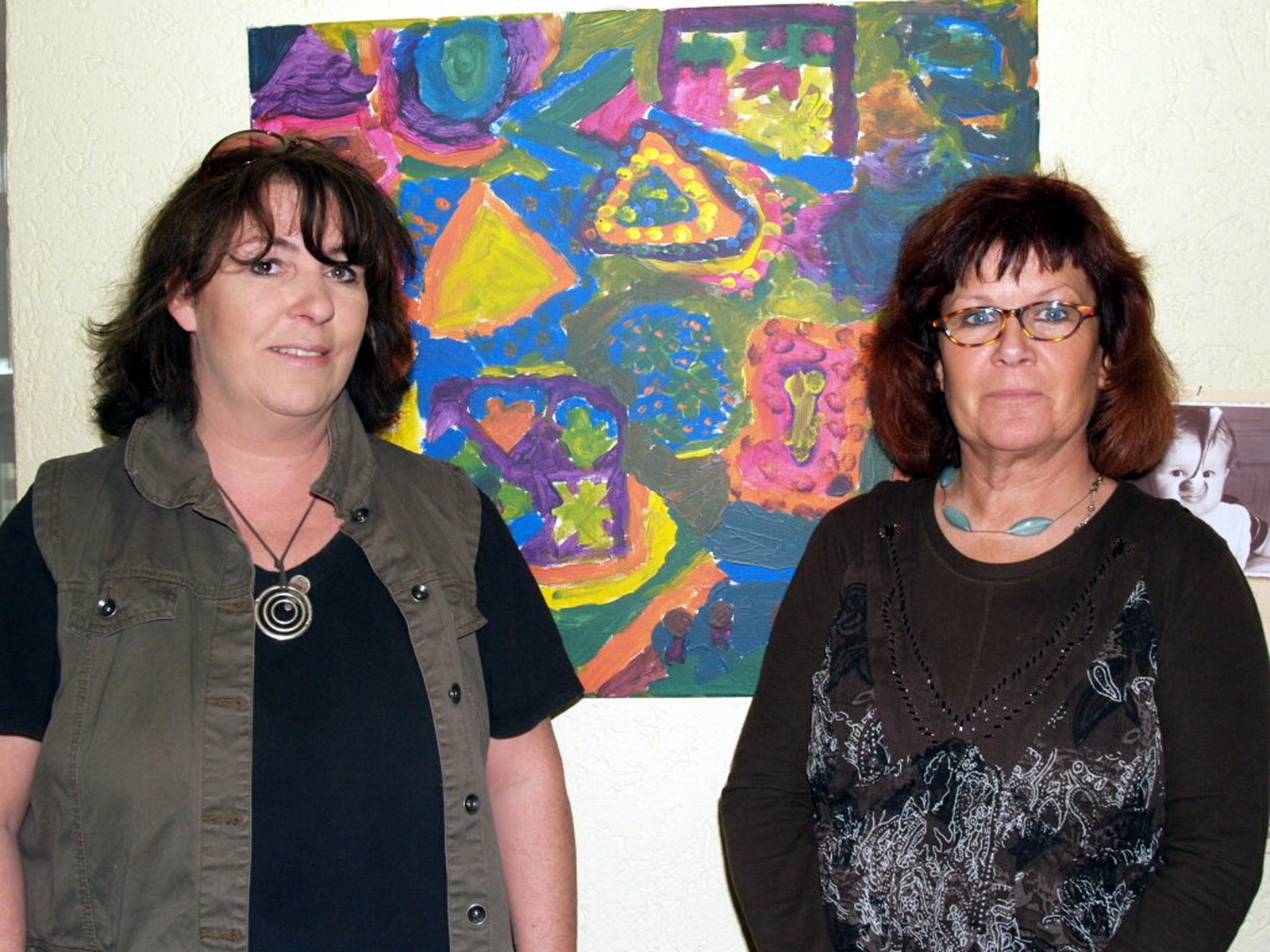 Um dieses Ziel zu erreichen, habe sie gezielt Farben, kunsttherapeutische Methoden und Musik eingesetzt. „Die Frauen sollten einfach den Kopf abschalten und sich leiten lassen“, erklärt Claudia Simmler. Am Ende des vierwöchigen Kurses sei nicht nur sie, sondern auch die Teilnehmerinnen von den Ergebnissen überrascht gewesen. Beeindruckt zeigten sich am Samstag auch die Besucher der Ausstellung im Malsbendener Rot-Kreuz-Kindergarten. Neben den meist warmen Farbtönen fielen dabei auch die unterschiedlichen Herstellungstechniken der Kursteilnehmerinnen ins Auge. So gab es unter anderem Kleisterbilder und Drucke zu sehen.
