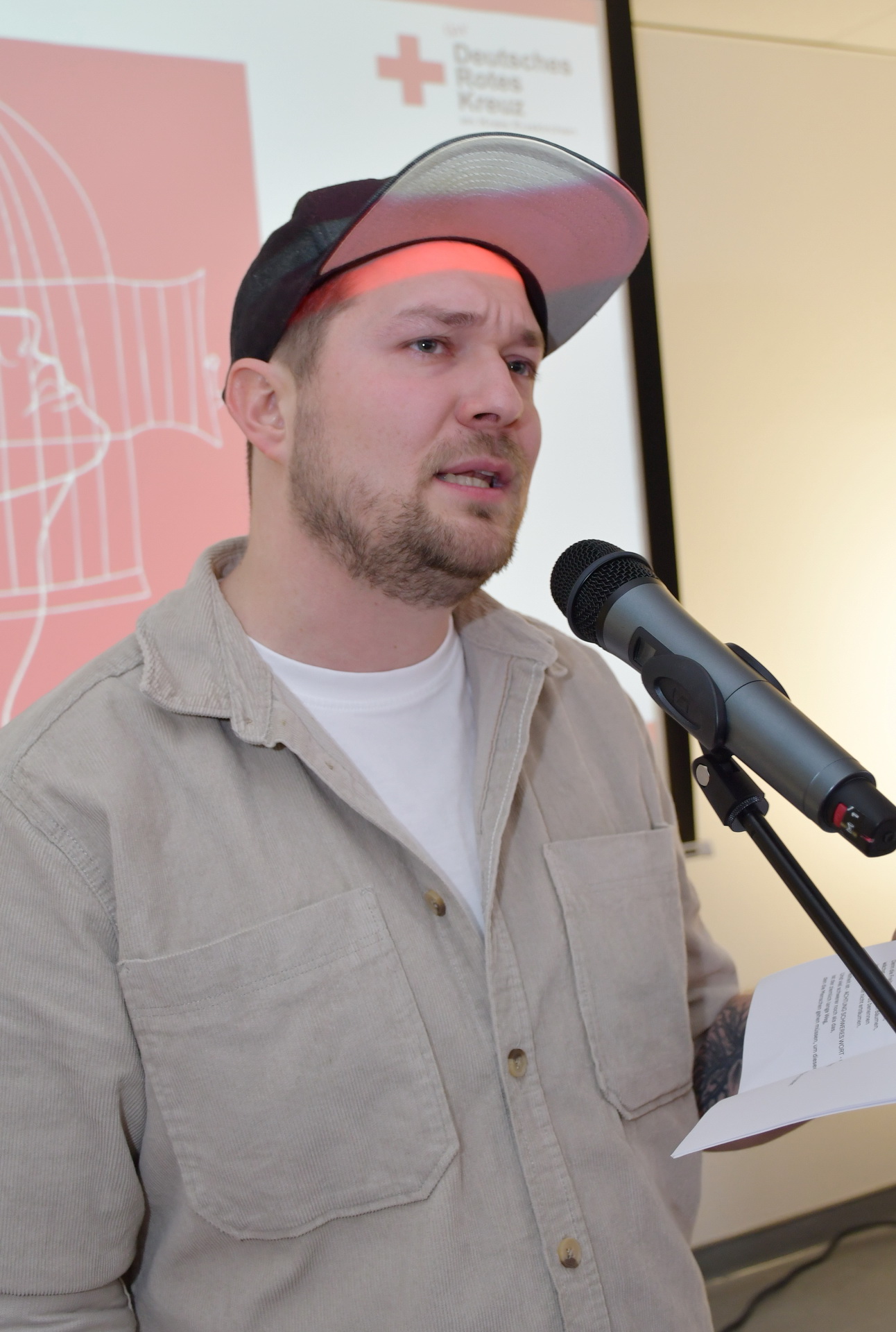 Es moderierte Julius Esser aus Zülpich, freischaffender Künstler und Poetry Slammer, der auch einen Slam zum Thema „Freiheit“ mitgebracht hatte, eine Reflexion auf das eigene aktuelle Vaterwerden und gleichzeitig stilisiertes Loblied auf die Bildungsarbeit des Roten Kreuzes, mit der Selbstbewusstsein und Freiheitsfähigkeit von Menschen unterfüttert und gestärkt werden.