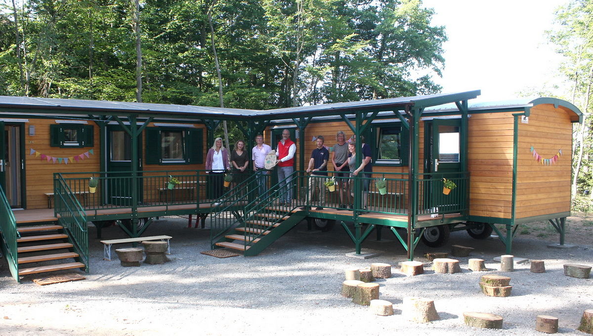 Blankenheim-Mülheim – Ein Hase begrüßt jeden Morgen das Team des neuen Rotkreuz-Waldkindergartens in Blankenheim-Mülheim. Die Vorbereitungen laufen auf vollen Touren, denn am 1. August starten die ersten Kinder, die „Buchfinken“, ins neue Kindergartenjahr. „Ein Waldkindergarten bietet ganz besondere Möglichkeiten – sowohl die Natur zu entdecken als auch für die erlebnispädagogische Arbeit der Erzieher“, freut sich Rotkreuz-Kreisgeschäftsführer Rolf Klöcker.