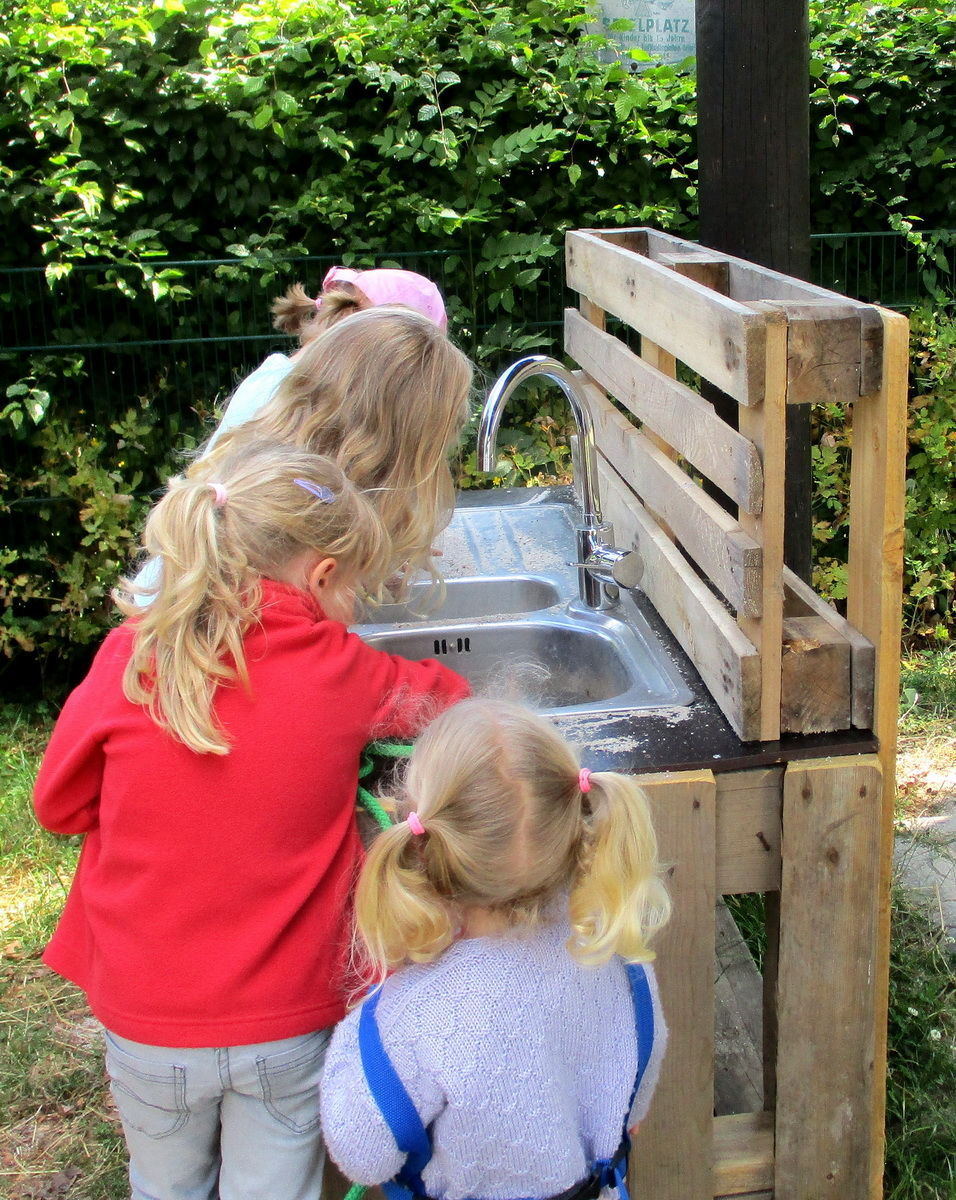 Rotkreuz-Kita „Kastanienlaube“ Ripsdorf hat nun neben eigener „Tankstelle“ und Hochbeeten auch eine „Matschküche“ und eine massive Sitzgruppe für ihren Hof