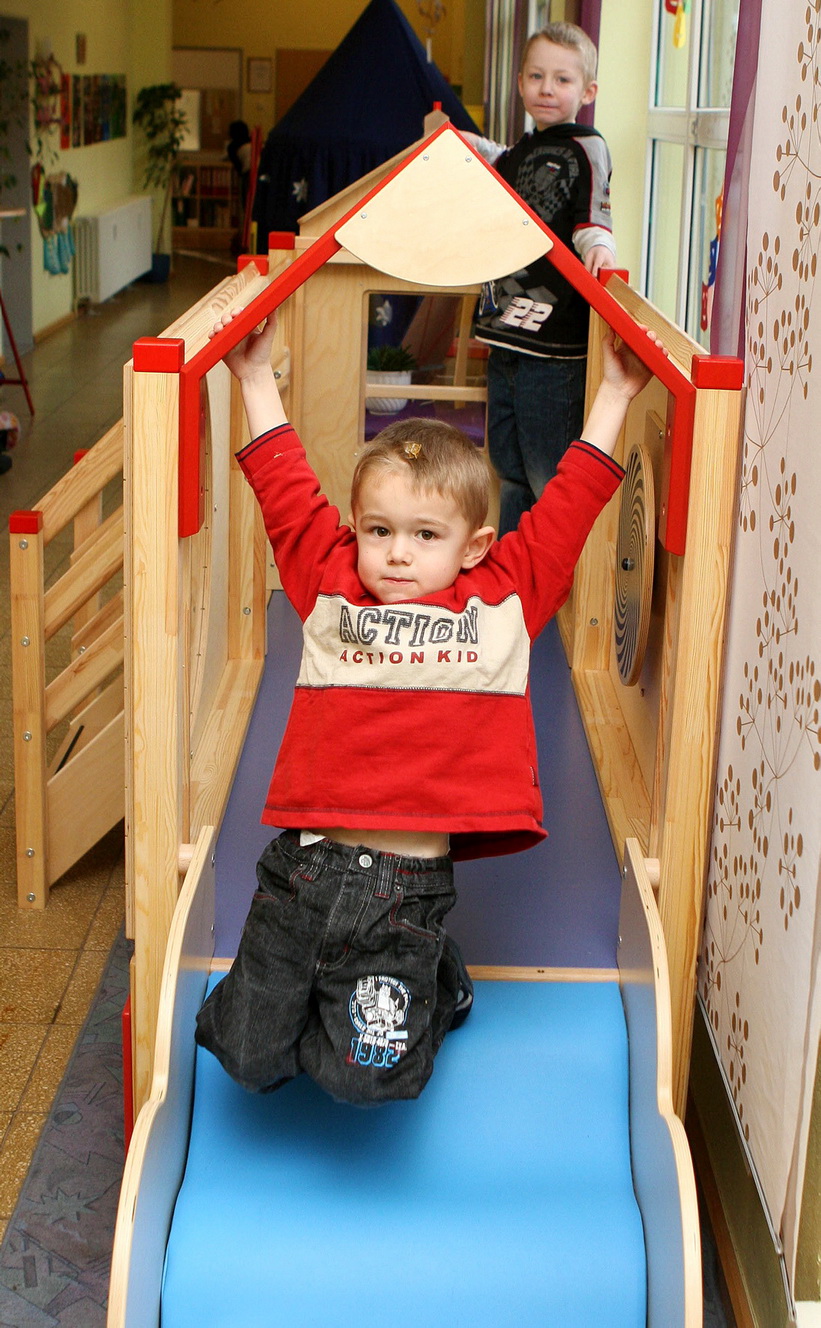„Spontan haben die Eltern die Räume neu gestrichen. Dafür danke ich recht herzlich“, freut sich Kita-Leiterin Andrea Galitz. Und das sollte noch nicht alles sein: Mit finanzieller Unterstützung der Hilfsgruppe konnte sie auch neue Therapiegeräte anschaffen. Begeistert turnen die Kinder auf dem neuen Trampolin oder spielen auf der neuen Kletterburg. „Das Sozialverhalten der Kinder wird durch solche Geräte enorm gefördert“, sagte Andrea Galitz.