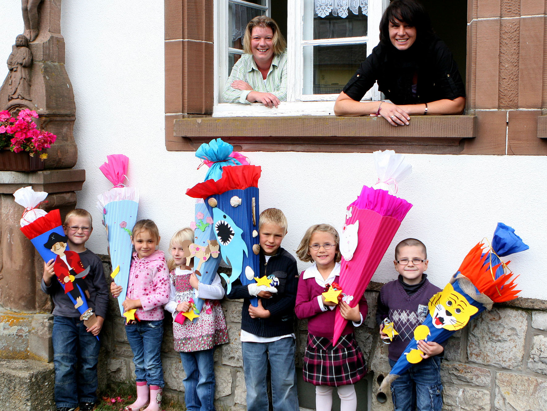 Nach der feierlichen Überreichung des „Felix“ gab es noch einen weiteren Programmpunkt: „Es ist so Brauch, dass wir die Kinder, die uns in Richtung Schule verlassen, gebührend verabschieden. Dabei werfen wir sie symbolisch aus dem Fenster“, erklärte Anja Leitner. Und tatsächlich: Mutig „flogen“ die sechs I-Dötzchen kurz darauf aus dem Fenster ¬- natürlich im Erdgeschoss und direkt in die Arme ihrer Eltern. Anschließend wanderten sie, jeder mit einem kleinen Abschiedsgeschenk und ihrer Schultüte in der Hand, zum Grillplatz, wo die Feier gemütlich ausklang. Spätestens da bestätigte sich wieder einmal das Motto von Rolf Klöcker: „Bei uns ist jeder willkommen.“