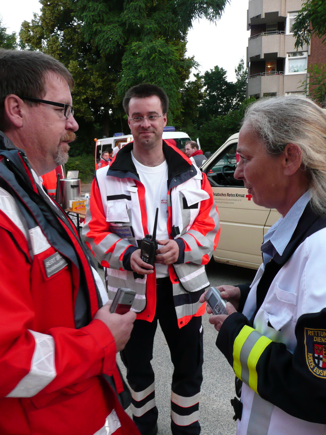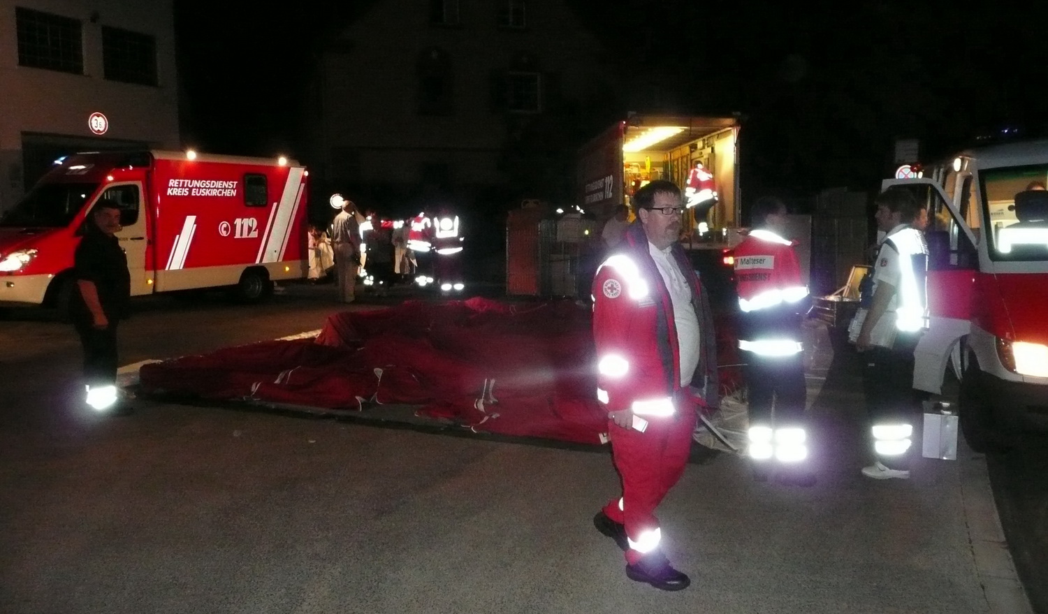 Euskirchen - Am frühen Samstagmorgen waren Einsatzkräfte von Feuerwehr, Rettungsdienst, Malteser-Hilfsdienst und Rotem Kreuz im Großeinsatz in der Euskirchener Innenstadt. Hausbewohner mussten evakuiert und betreut werden. Reibungsloses Zusammenspiel von Rettungskräften und Feuerwehr.