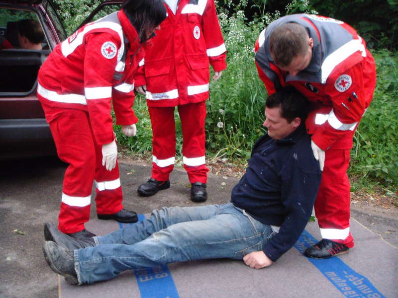 Das Rote Kreuz Dahlem hat jeden letzten Dienstag im Monat Bereitschaftsabend. Dort sprechen die Aktiven über Termine, Betreuungen und Veranstaltungen des nächsten Monats. Hin und wieder stehen auch Fortbildungen und Übungen auf dem Tagesplan. So wie unlängst diese Verkehrsunfallübung.
