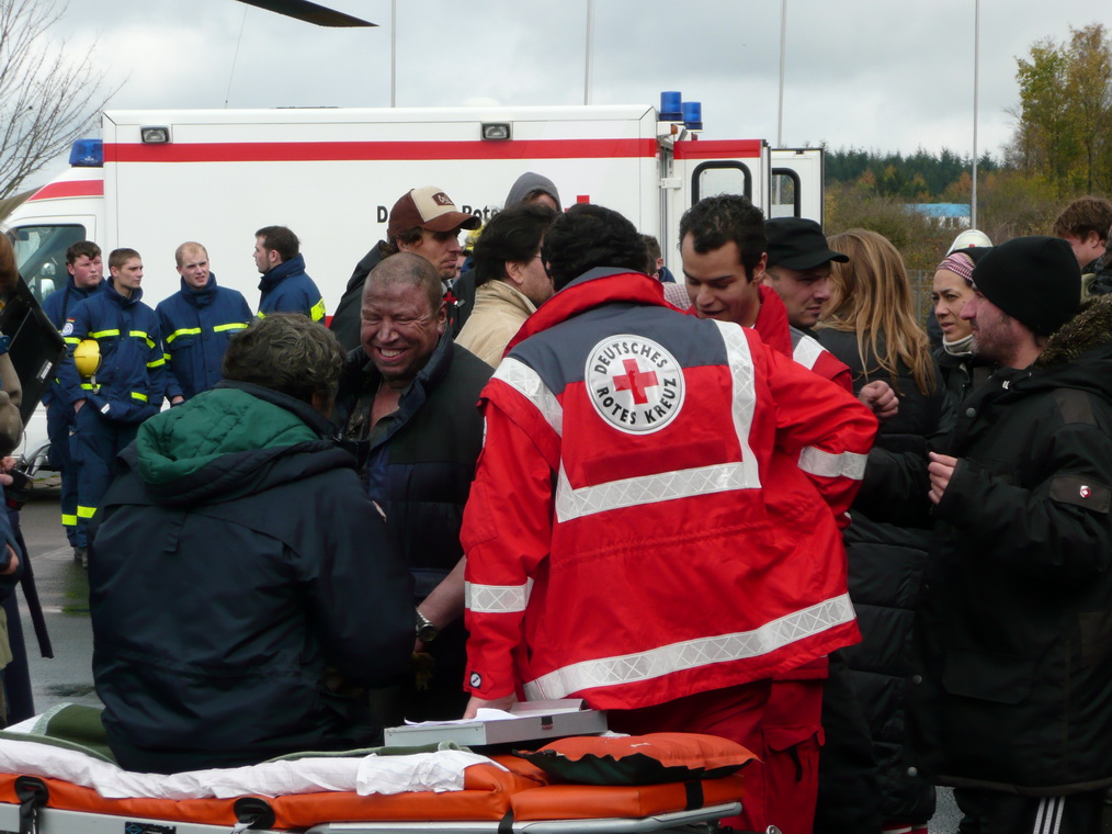 Auf der Dahlemer Binz wurde am Montag ein weiterer Drehtag für den "Vulkan" eingelegt. Die Dahlemer Feuerwehr, das Schleidener THW und das Rote Kreuz aus dem Kreis Euskirchen waren mit dabei.
