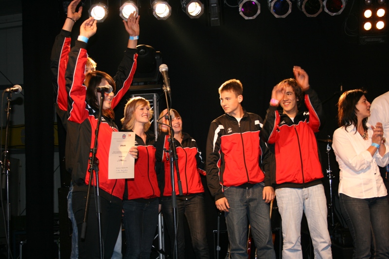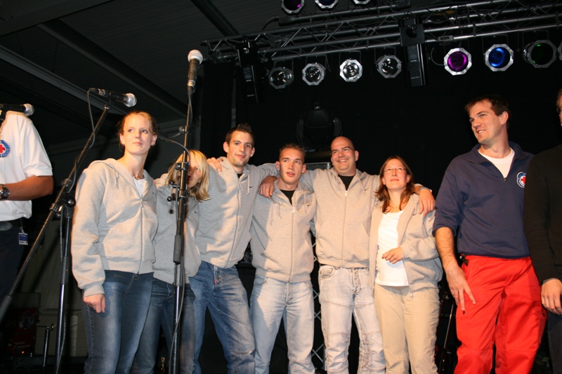 Der große Dank der Rotkreuz-Wasserwacht gilt dem Bürgermeister und Schirmherrn Hans-Theo Mennicken sowie den Mitarbeitern der Stadt Rheinberg für ihre außerordentliche Unterstützung des Jubiläumstreffens „50 Jahre Wasserwacht Nordrhein“. Bei einer begeisternden Bühnenshow, bei der unter anderem die Band „Zauberlehrling“ auftrat, feierten 800 Rotkreuzler und Rheinberger Gäste bis tief in die Nacht.