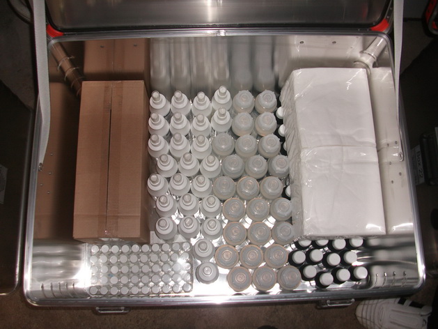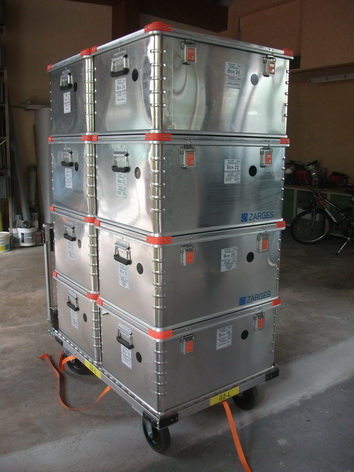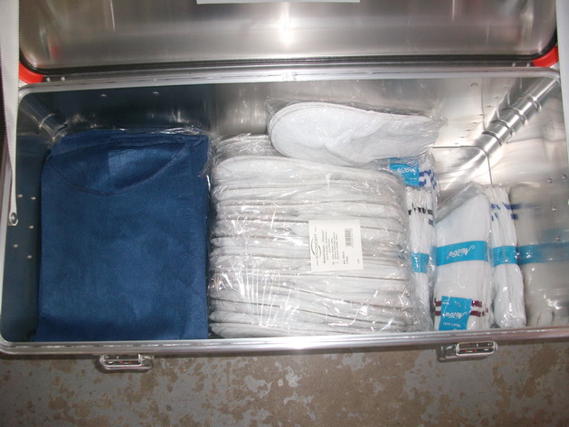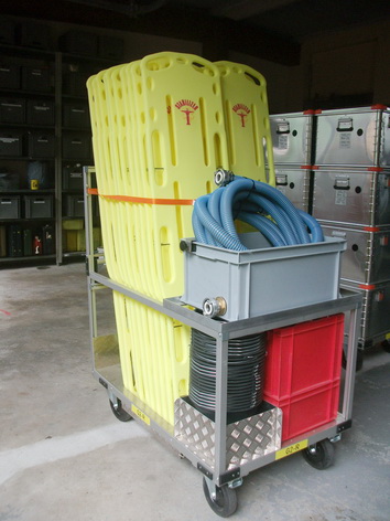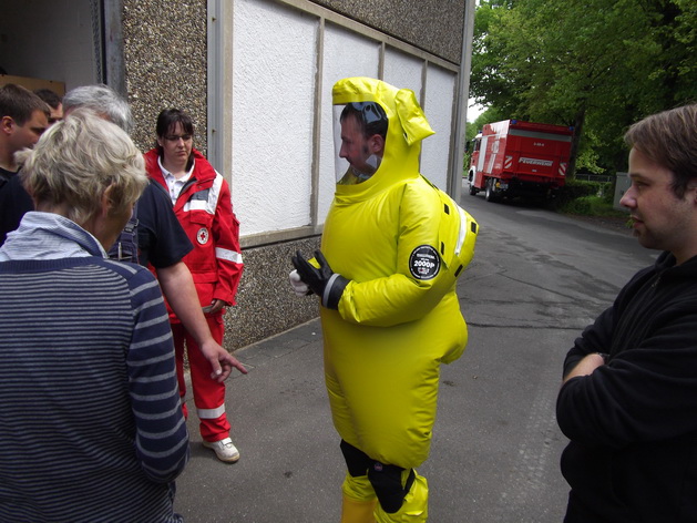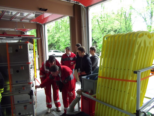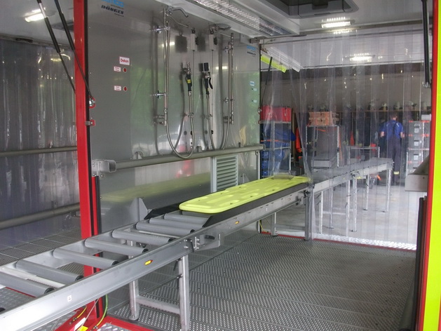 Deswegen wurde der gesamte Behälter aufgebaut und ausgeräumt, um sich einen ersten Überblick über den Inhalt zu verschaffen. In weiteren Ausbildungen wird sowohl das Personal, als auch die Rotkreuzler speziell geschult im Umgang mit der Verletzendekontamination.