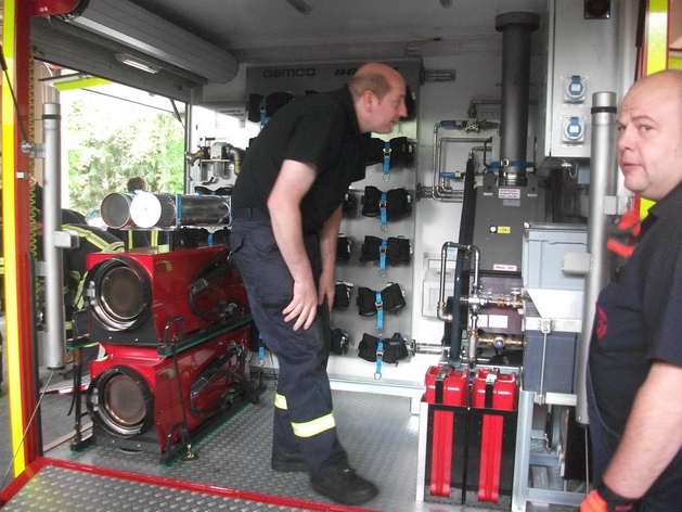 Vergangenen Sonntag präsentierte Walter Wolff, der Leiter der Dekoneinheiten im Kreis, der Gemeindefeuerwehr, den Rotkreuzführungskräften und der Rotkreuzgemeinschaft Dahlem den Abrollbehälter.