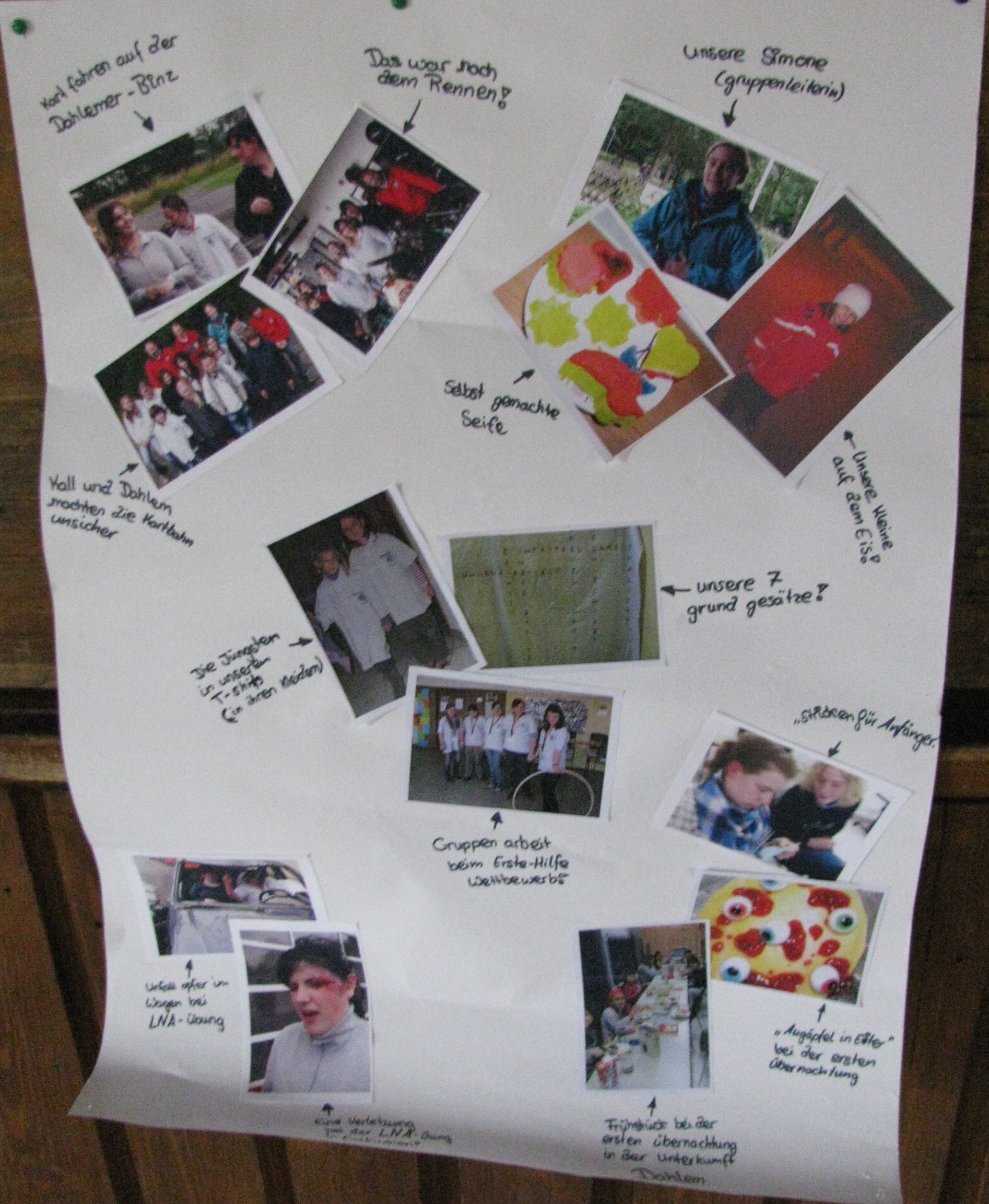 Es gab die Möglichkeit Buttons zu machen und Bilder zu entwerfen. Auch selbst gemachte Bildercollagen der Mitglieder des Jugendrotkreuzes waren zu bestaunen, auf denen zu sehen war, was das Jugendrotkreuz alles so macht. Desweiteren konnten, wenn es das Wetter zuließ, Laufdosen, Springseile, Riesen-Puzzle und Riesen-Mikado genutzt werden. Zudem gab es auch noch verschiedene Kartenspiele, die für Unterhaltung sorgten. Und wenn es doch mal einem kalt wurde, so konnten bei den anderen Gruppen und Vereinen, die sich beim Pfarrfest beteiligten, verschiedene Getränke, Waffeln, Pommes usw. gekauft werden. Auch die Mitglieder der Bereitschaft des Ortsvereins Dahlem, die dieses Mal das Jugendrotkreuz mit dem Rettungswagen unterstützten, hatten bei den verschiedenen Aktivitäten ihren Spaß.