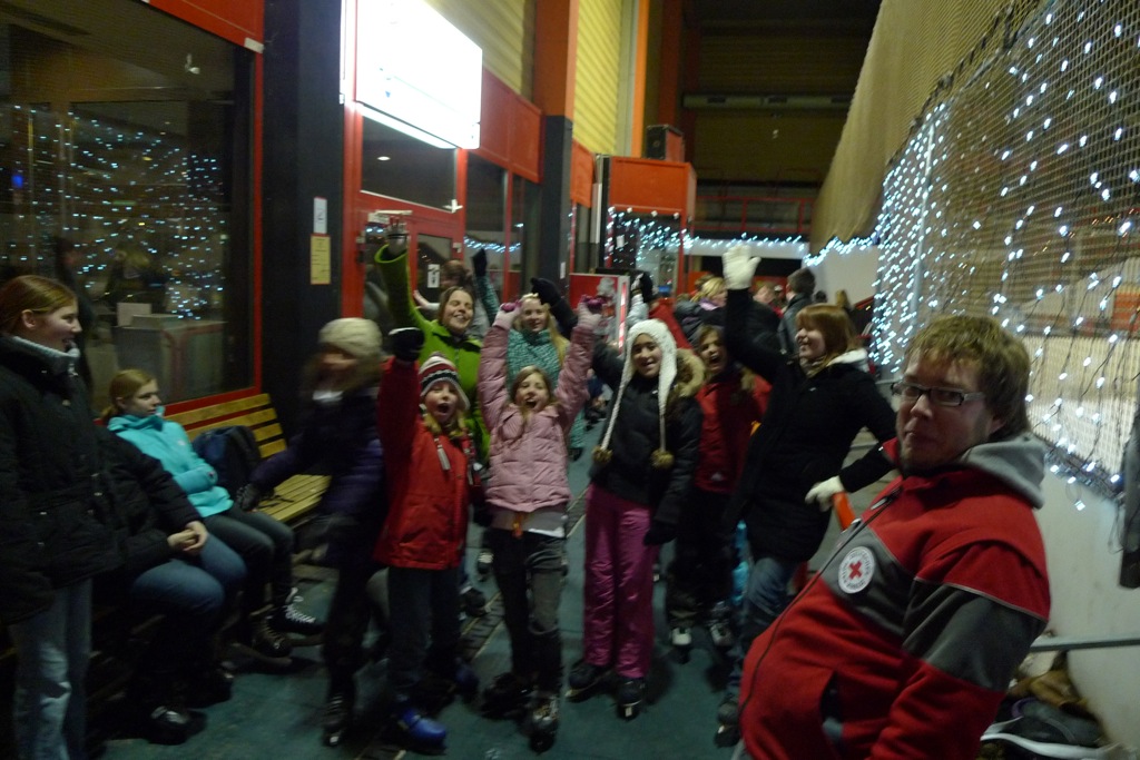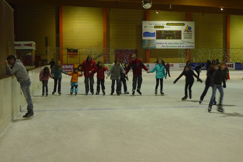 Das Jugendrotkreuz (JRK) und der Chor "Wir sind eins" starteten am Freitag mit einer großen Rutschpartie ins neue Jahr. Insgesamt 41 Kinder, Jugendliche und Erwachsene glitten dabei im Icedome Troisdorf gemeinsam übers Eis und erlebten einen schönen Jahresauftakt.