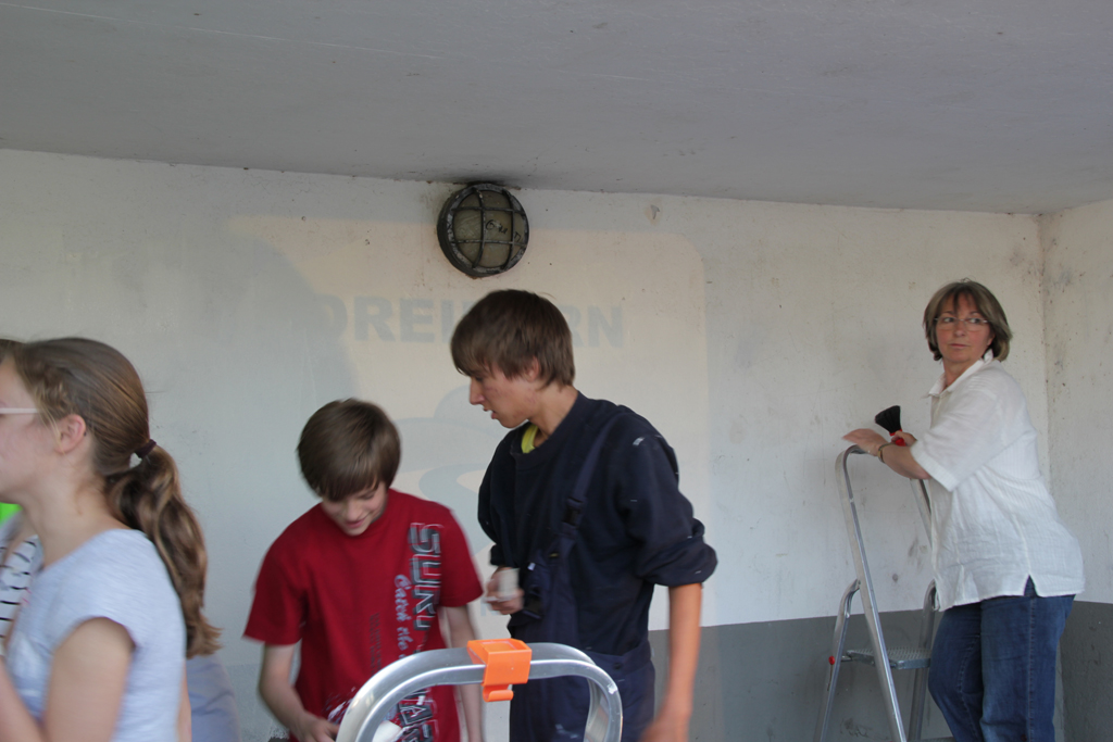 Das Dreiborner Jugendrotkreuz engagiert sich für die Gemeinde und renoviert die alte Bushaltestelle vor der Kirche.