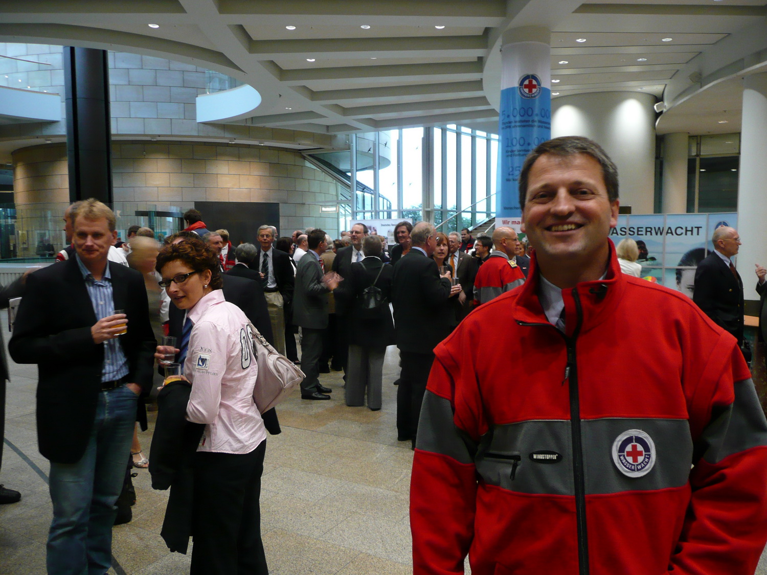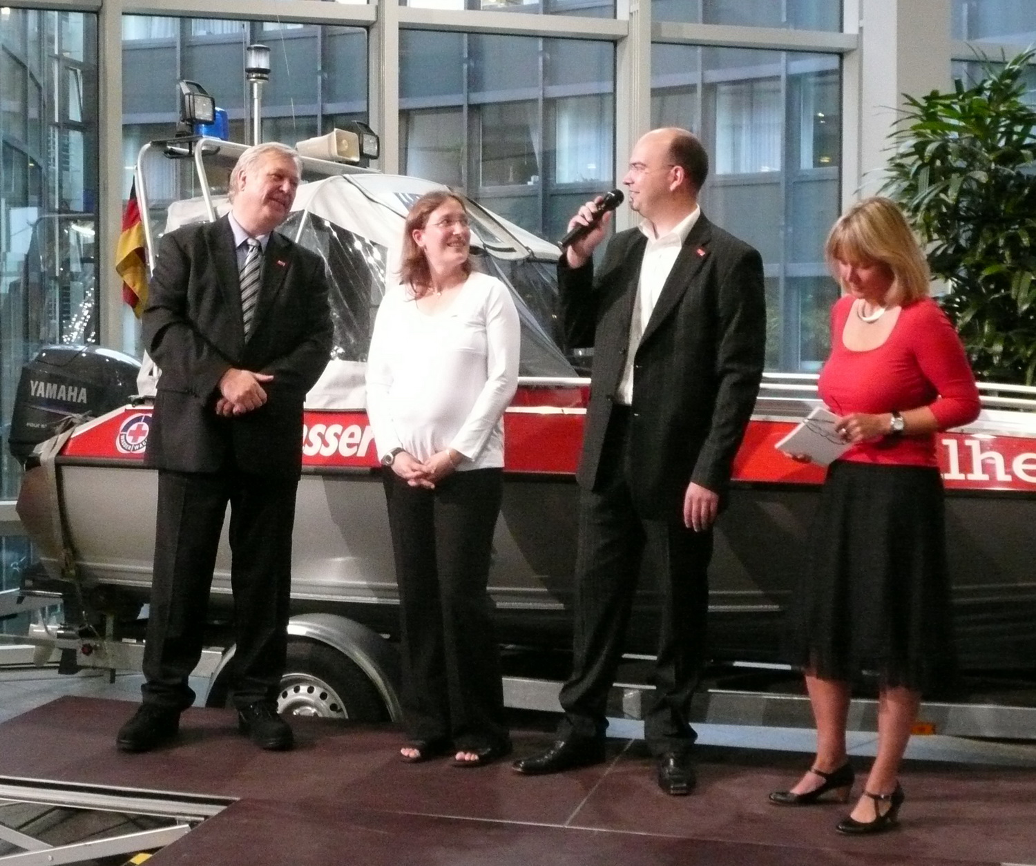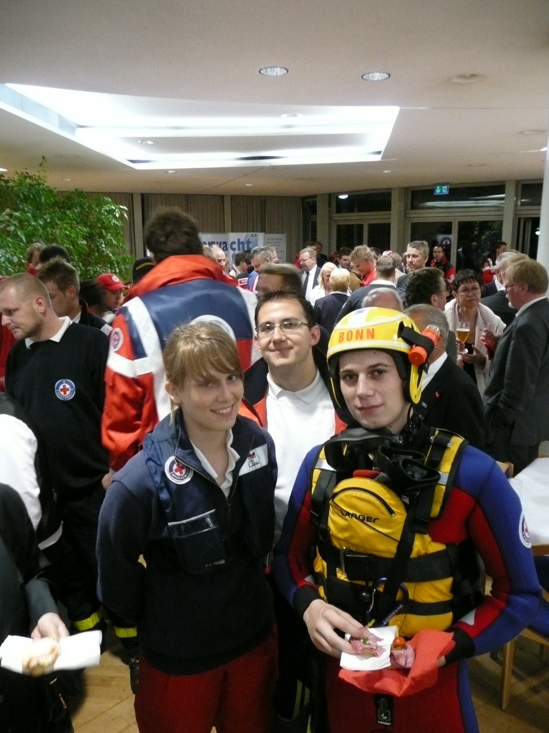 Insgesamt stand der Abend für eine beeindruckende Präsentation des weiten Spektrums der Rotkreuz Arbeit und war auch ein herzliches Dankschön für die Arbeit der vielen Ehrenamtlichen. Dieter Schneider-Bichel, der Leiter der Rotkreuz Wasserwacht Nordrhein, lobte in seiner Rede auch besonders den tollen Einsatz der Dahlemer Wasserwacht und bedankte sich dafür bei Christiane und Christian Wawer aus Dahlem.