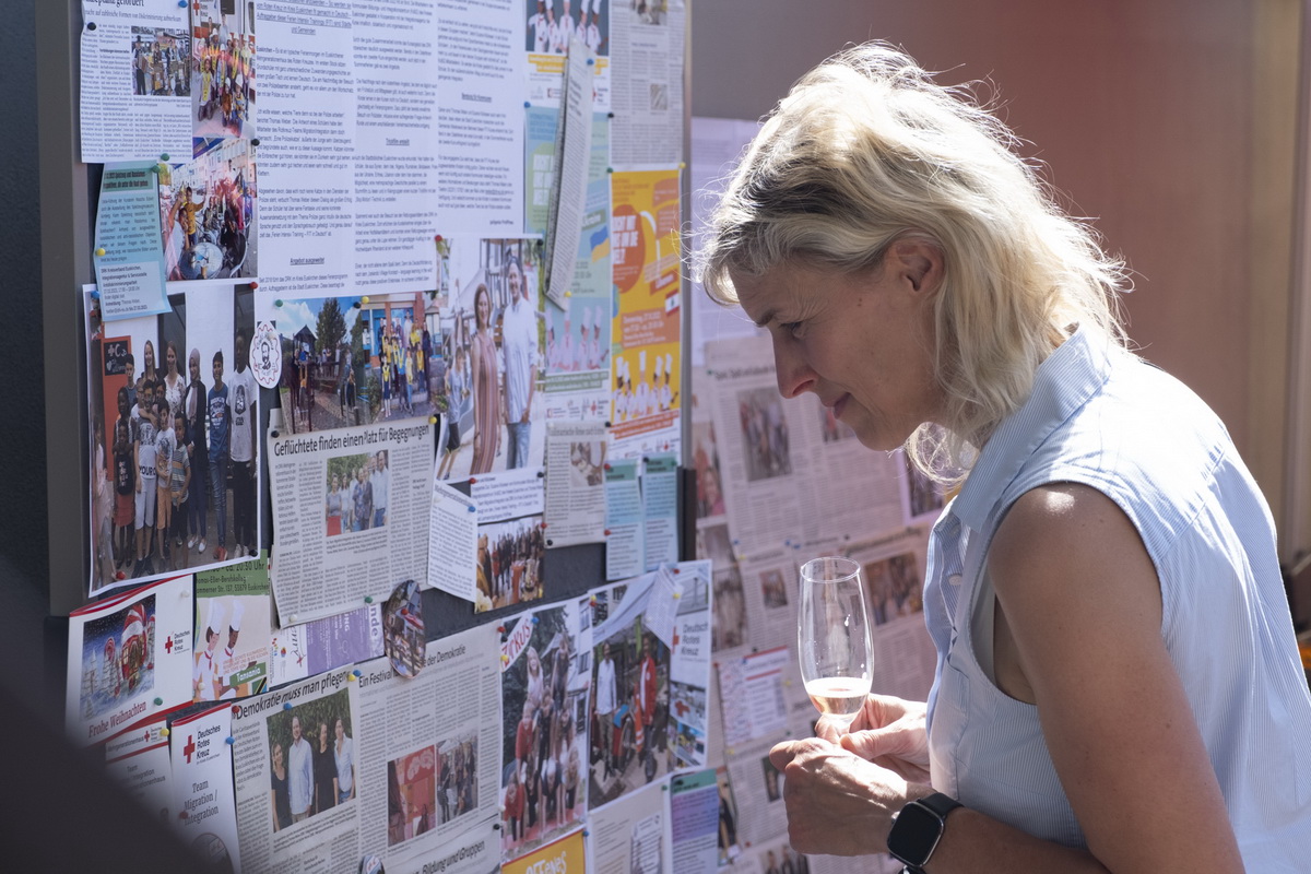 Euskirchen – Zwei Pinnwände voller Zeitungsartikeln, Bildern, Flyern und Plakaten stechen im Garten des Café Henry ins Auge. Sabine Sistig schaut sich die Ausschnitte aus zehn Jahren Arbeit der DRK-Integrationsagentur interessiert an. „Ich kann mich genau erinnern, wie wir vor zehn Jahren dahinten an dem Tisch gesessen und über die Zusammenarbeit beraten haben“, sagt die Leiterin des Kommunalen Bildungs- und Integrationszentrums (KoBIZ) des Kreises Euskirchen.