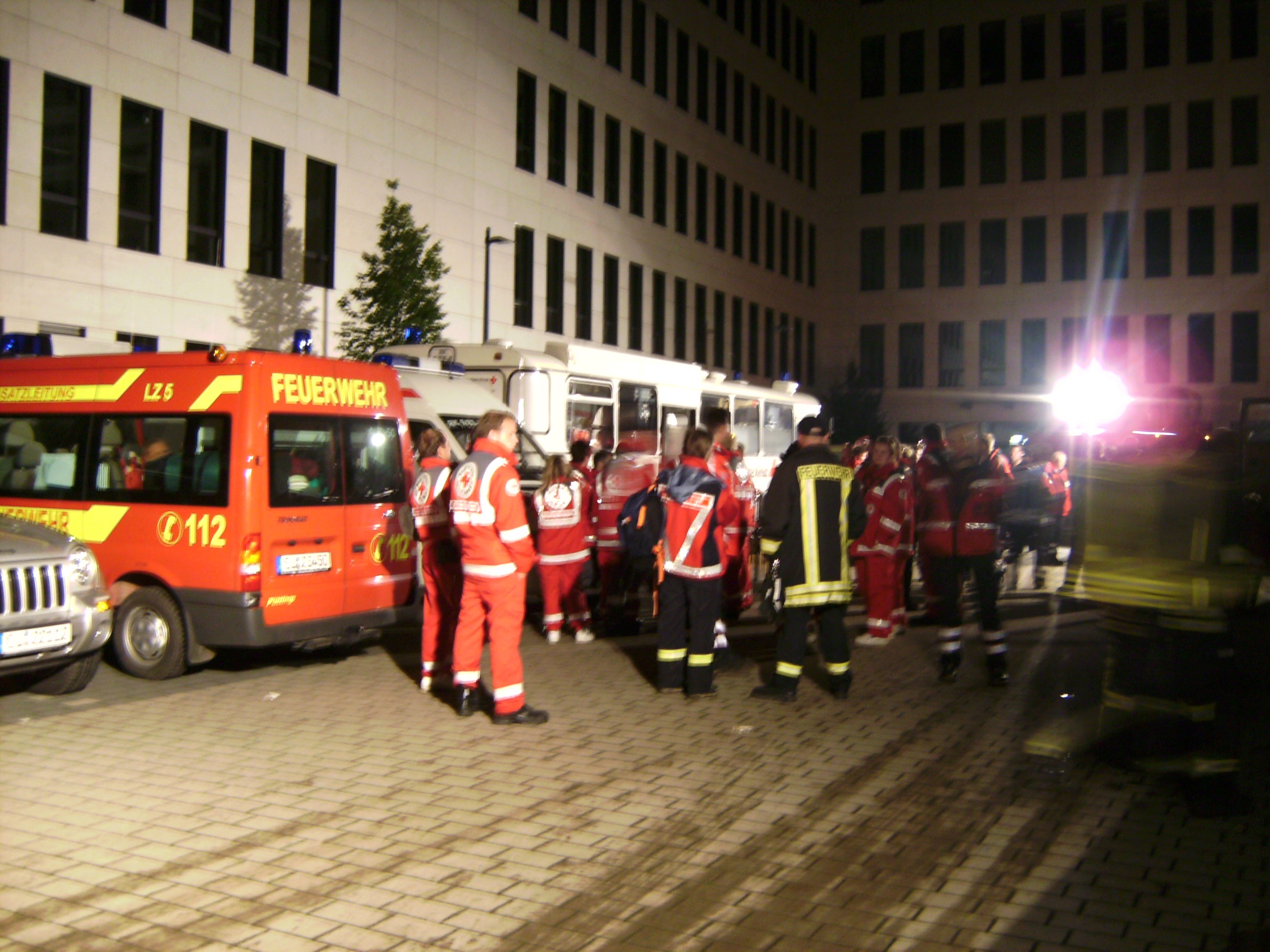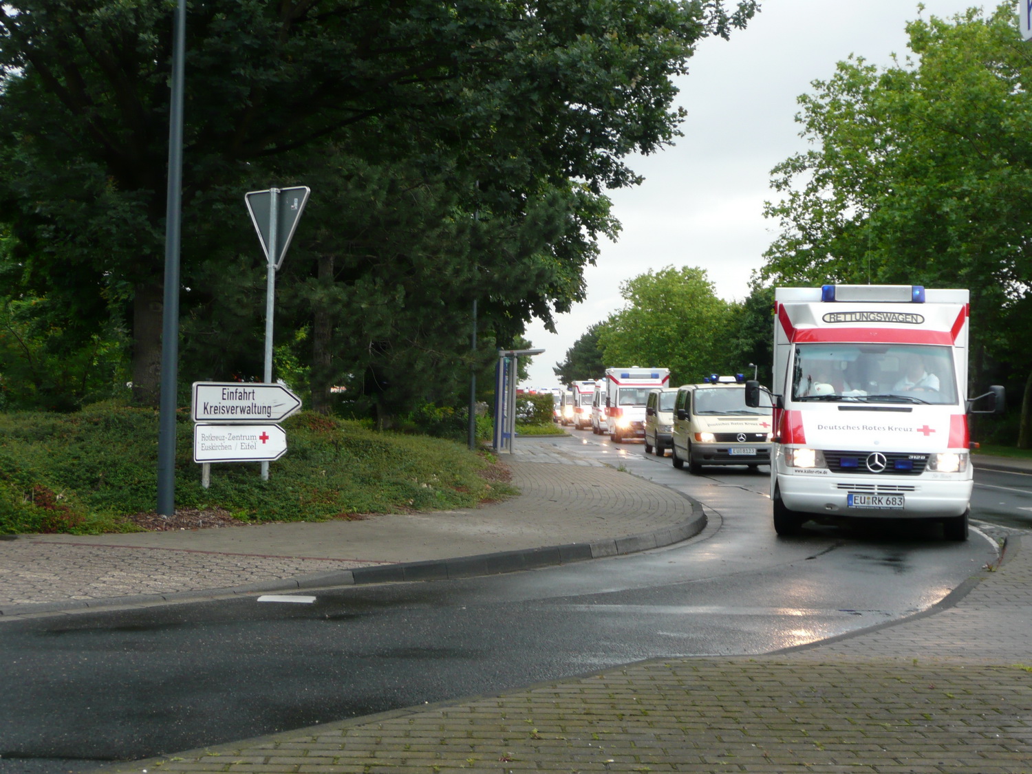 Um bei der Loveparade in der Ruhrmetropole helfen zu können, hatten sich die 165 Einsatzkräfte vom Roten Kreuz, Malteser Hilfsdienst, dem Rettungsdienst des Kreises und der Freiwilligen Feuerwehr am frühen Samstagmorgen auf dem Gelände der Euskirchener Kreisverwaltung am Rot-Kreuz-Zentrum versammelt.