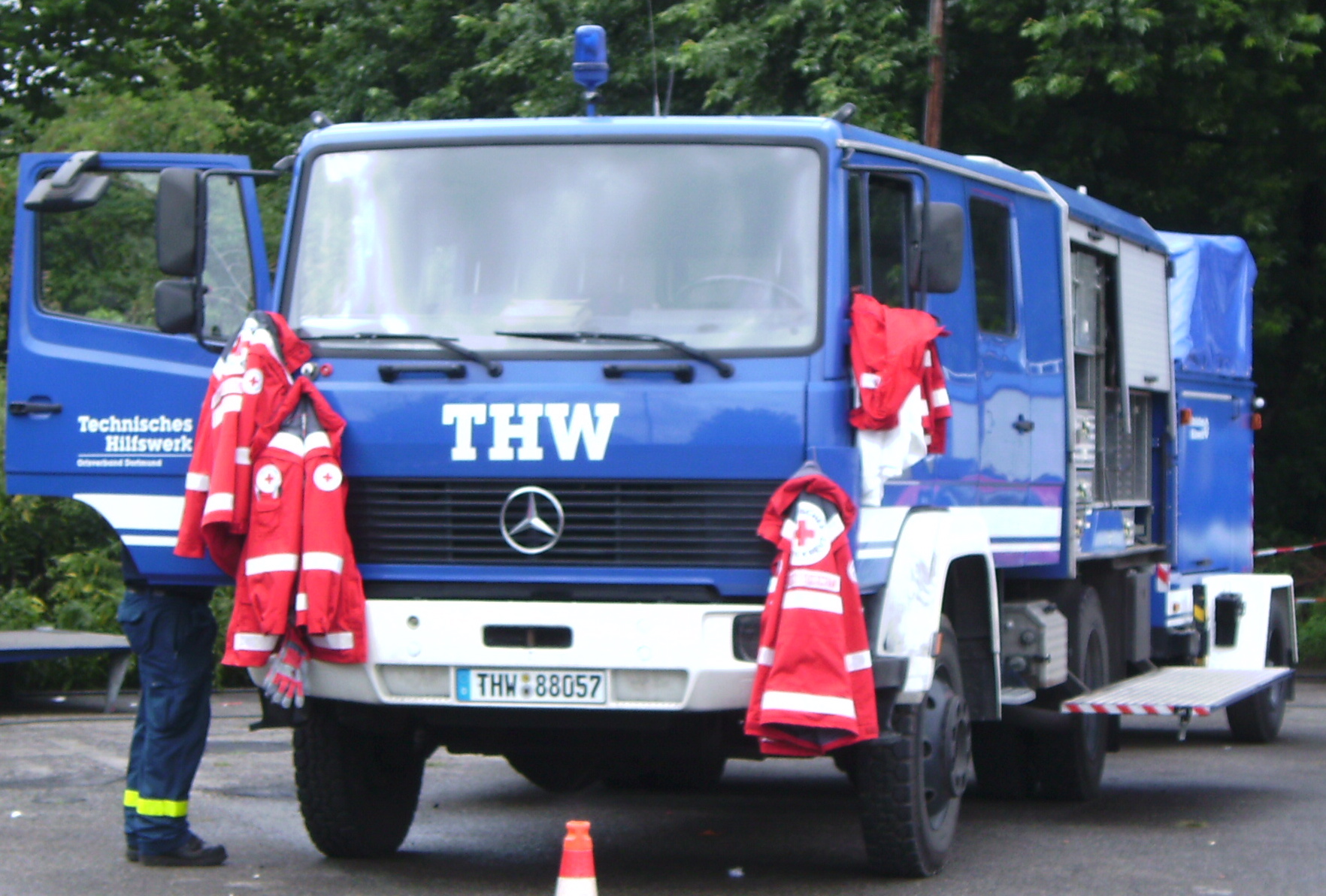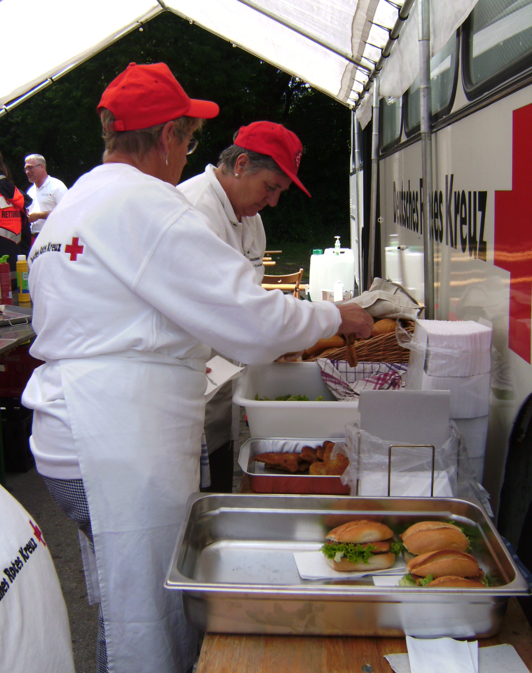 Für das leibliche Wohl sorgte die "Mobile Großküche" des Roten Kreuzes mit ihren Verpflegungsspezialisten. Das örtliche THW war ebenfalls in die Versorgung der Einsatzkräfte eingebunden.