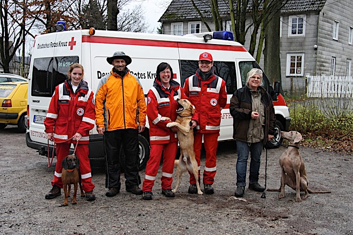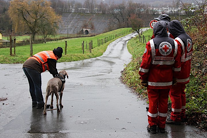 Zwei Rotkreuz-Hundeführerinnen haben mit ihren Hunden den "Mantrailer-Instinkttest" mit Erfolg bestanden. Er ist eine Vorprüfung, bei dem getestet wird, ob der Hund und sein Hundeführer fähig sind, an einer "Mantrailing"-Prüfung erfolgreich teilzunehmen.