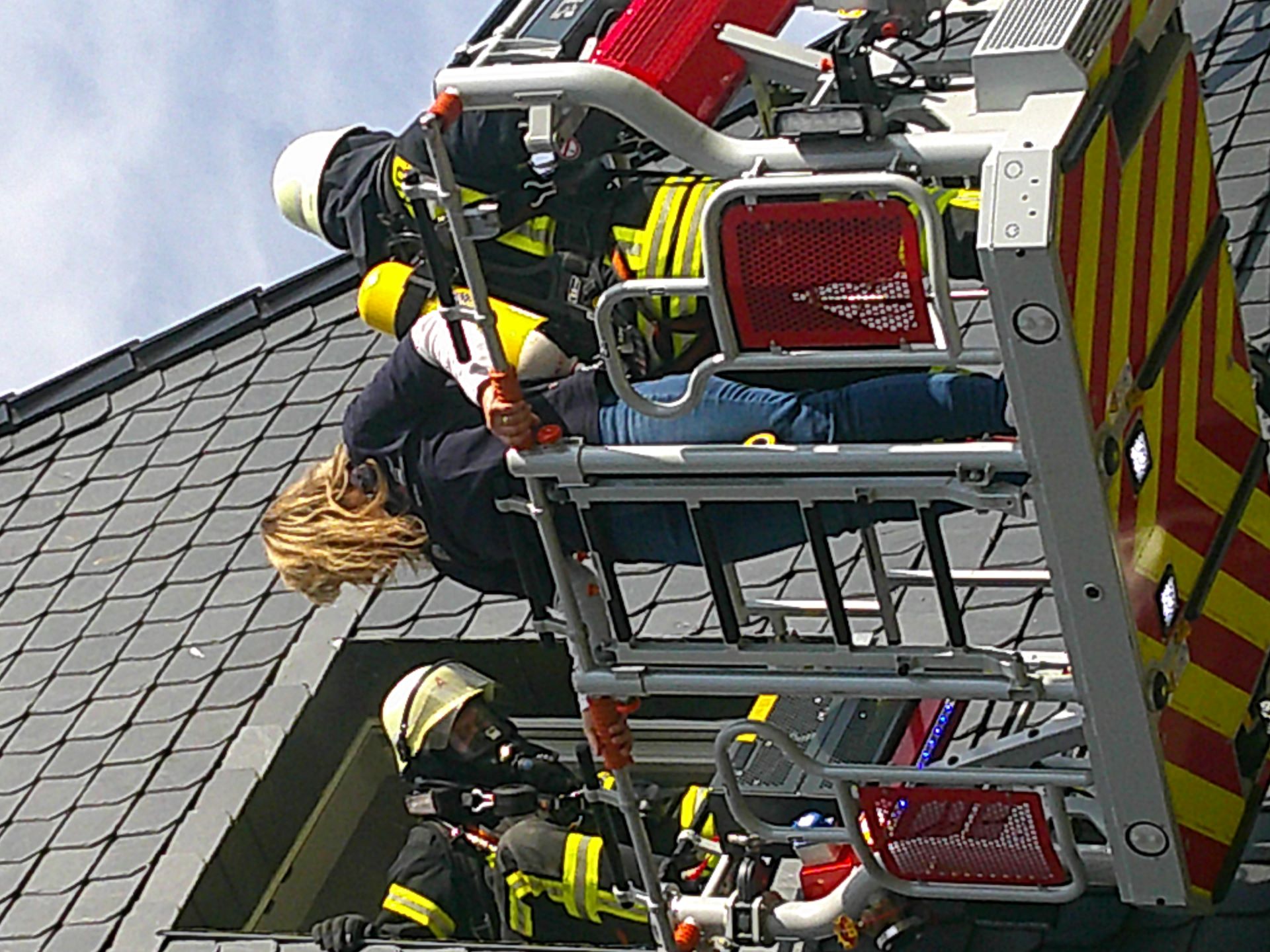 Schließlich musste das Drehleiter-Fahrzeug auch noch seine Position wechseln, um einen im Obergeschoss festsitzenden Feuerwehrmann auf einer Bahre durch ein Fenster zu evakuieren. Erst als wenig später alle beteiligten Personen in Sicherheit gebracht worden waren, konnte die Brandschutzübung erfolgreich beendet werden. Die Kinder, denen der Tag sicher noch lange in Erinnerung bleiben wird, gab´s zum Abschluss wohlverdiente Donuts und Getränke von der Feuerwehr.