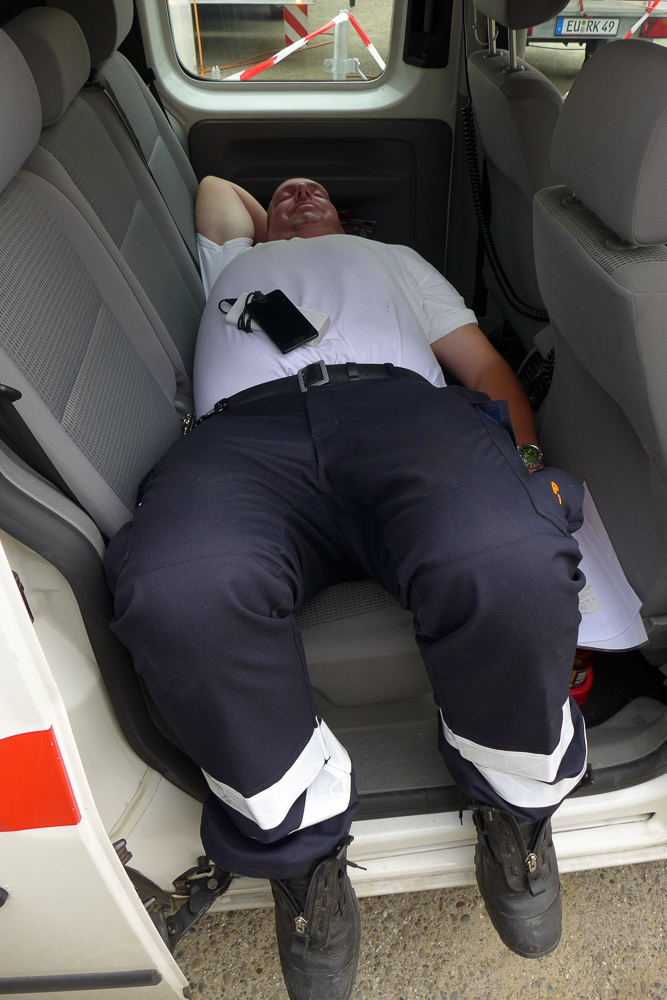 Direkt neben der mobilen Einsatzleitung stehen Kalt- und Warmgetränke sowie Verpflegung für alle bereit. Damit die Arbeit an den Schadensstellen nicht unterbrochen werden muss, werden auch Lunch-Pakete direkt zu den Helfern gebracht.