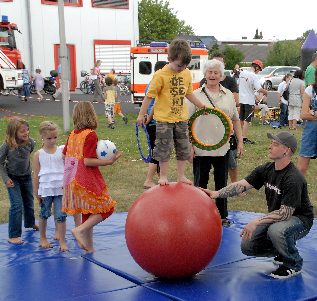 Die Veranstalter versprechen ein abwechslungsreiches Programm für die ganze Familie. Und in der Tat: Ob Dosenwerfen, Torwand- und Bogenschießen, Kistenklettern, Toben auf der Rotkreuz-Hüpfburg oder dem Kurven auf einem Kettcar-Parcours, den man mit einer Rauschbrille der Polizei durchfahren kann – es wird allerlei geboten. Auf den Geldbeutel braucht dabei niemand zu achten, denn: „Alle Spiele und Aktionen sind kostenlos“, betonte Bodo Froebus vom Roten Kreuz im Kreis Euskirchen. „Wichtig ist uns, dass der Spaß im Vordergrund steht“, ergänzte Bernd Milz.