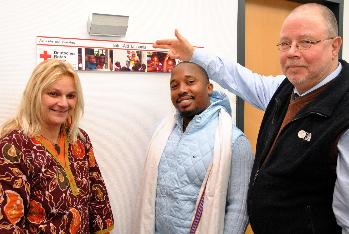Auf Einladung von Rolf Zimmermann, Geschäftsführer des Roten Kreuzes im Kreis Euskirchen und der Euskirchener Rotkreuz-Aktivistin Lilo Langen verbringt der Afrikaner drei Monate in Deutschland. Er ist Langens Vertrauensmann in Tansania, wo die engagierte Frau in einem Vorort der Hauptstadt Dar-es-Salam eine Schule und einen Brunnen bauen will.