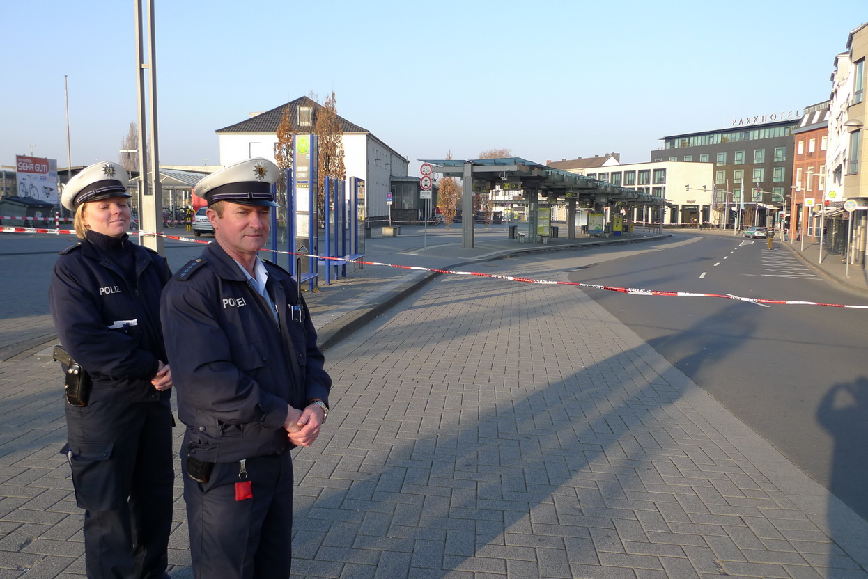 Wegen eines Bombenfundes musste das Gelände rund um den Euskirchener Bahnhof großräumig abgesperrt werden. Feuerwehr, Polizei, das Euskirchener Ordnungsamt und das Rote Kreuz waren im Einsatz.