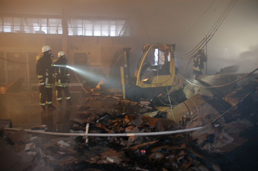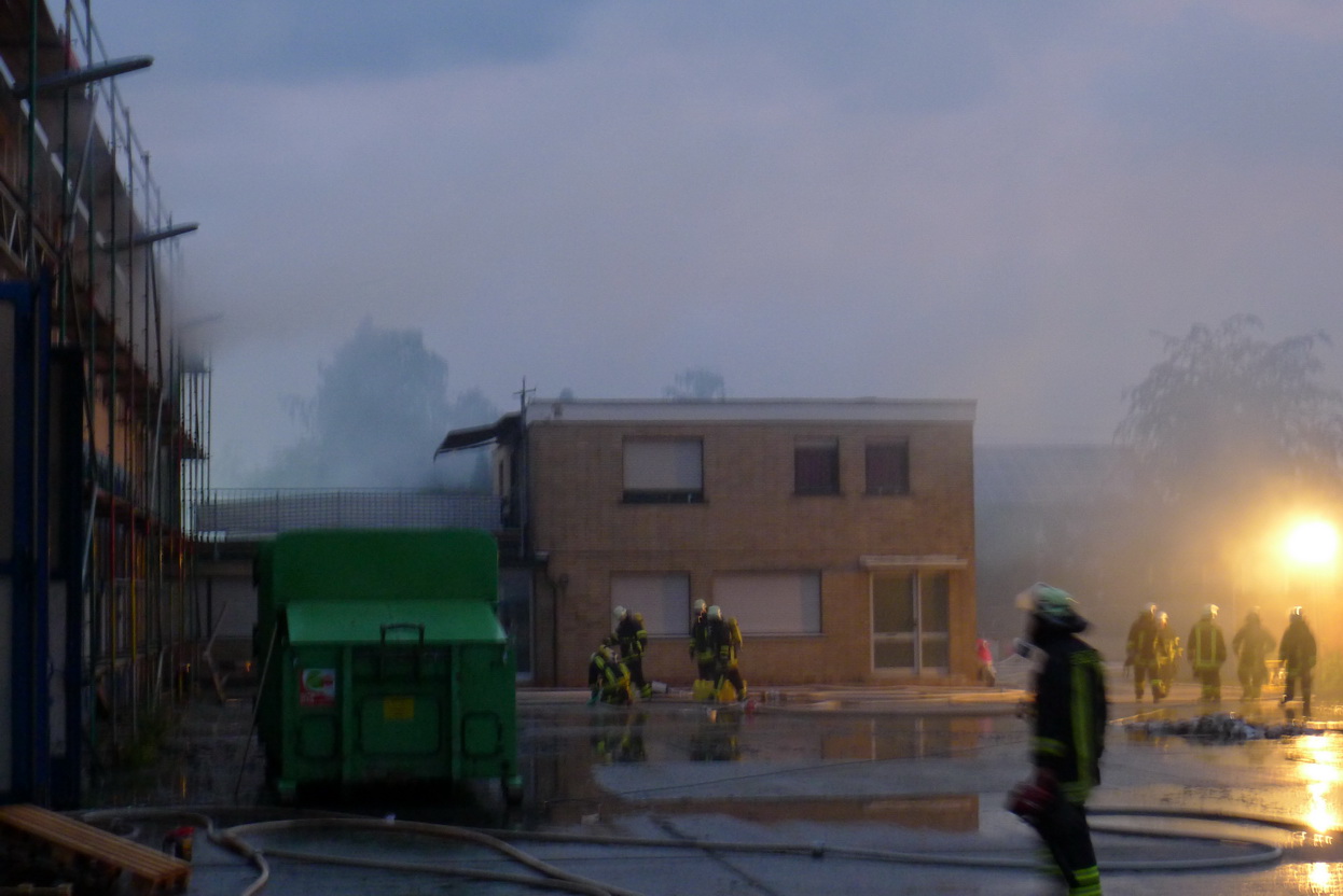 Kaum war der Großbrand in Ülpenich gelöscht, da rückten die Euskirchener Feuerwehrkameraden am frühen Samstag Morgen zu einem Hallenbrand in Dom Esch aus. Wieder einmal waren die Feuerwehren eine ganze Nacht im Einsatz um den Brand zu löschen und Schlimmeres zu verhüten.