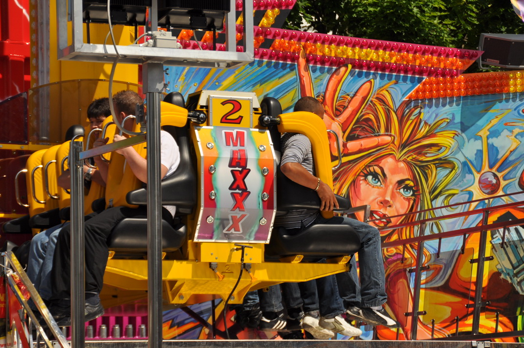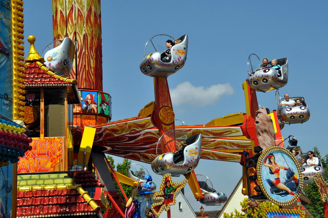 Die neue Sensation löst bei den Kirmesbesuchern wahres Erstaunen aus. In zwei Gondeln werden die Fahrgäste wahrlich durch die Luft geschleudert. "Respekt, da gehört schon eine ganze Menge Mut dazu!", so eine Besucherin im Gespräch mit der Rotkreuz-Redaktion.