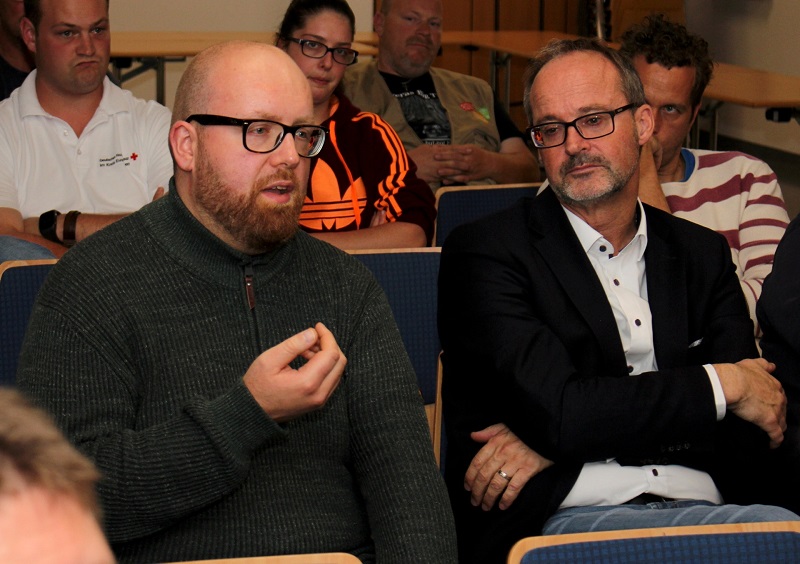 Dennoch dürfen die Helfer ja nicht ihre Arbeit einstellen. „Das Blaulicht muss sich drehen“, nennt Crespin das. Doch was können Helfer tun, will Ramers wissen. Daniel Heitmann spricht von Fortbildungen und Deeskalationstrainings, die alle zwei Jahre stattfinden. Boris Brandhoff, Leiter der Integrationsagentur des Deutschen Roten Kreuzes im Kreis Euskirchen, stellt das Projekt „Keep Cool“ vor. Dort lernen DRK-Angehörige, wie sie mit konfliktbeladenen Situationen umgehen, es geht um Kommunikation und Deeskalation. „Die Zündschnur heute ist bei vielen kürzer, viele Menschen sind überfordert und gestresst“, ergänzt Michael Mertens. Würden Menschen lernen, wie sie Konflikte nicht körperlich, sondern mit dem Mund lösten, sei das gut.