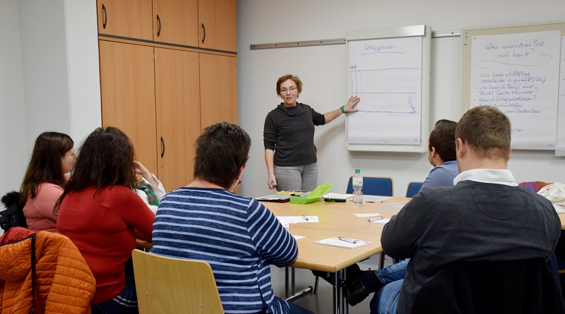 Diplom Psychologin Christel Hoyer, vom Institut für Betriebliche Gesundheitsförderung, räumte dagegen schnell mit Mythen auf. „Mehrmaliges Aufwachen gehört zu einem gesunden Schlaf und ist physiologisch sinnvoll“, sagte sie und gab ihr Wissen zu den Schlafphasen weiter. Angst nicht einschlafen zu können, bereite Stress genug und verhindere gesunden Schlaf. Sie gab Ratschläge zu festen Ritualen, die beim Einschlafen und Abschalten helfen können und benannte Gewohnheiten, die man vor dem Schlafen tunlichst nicht pflegen sollte, wie etwa längere Zeit mit dem Handy „daddeln“. Denn blaues Licht verhindere das gesunde Einschlafen.