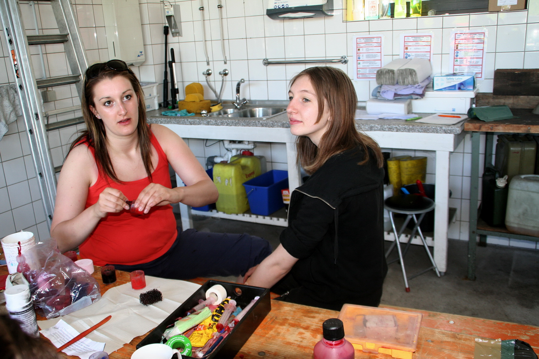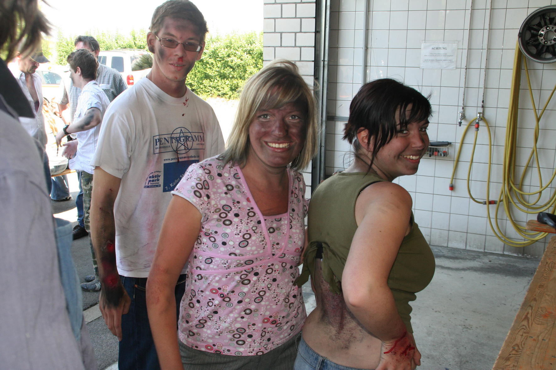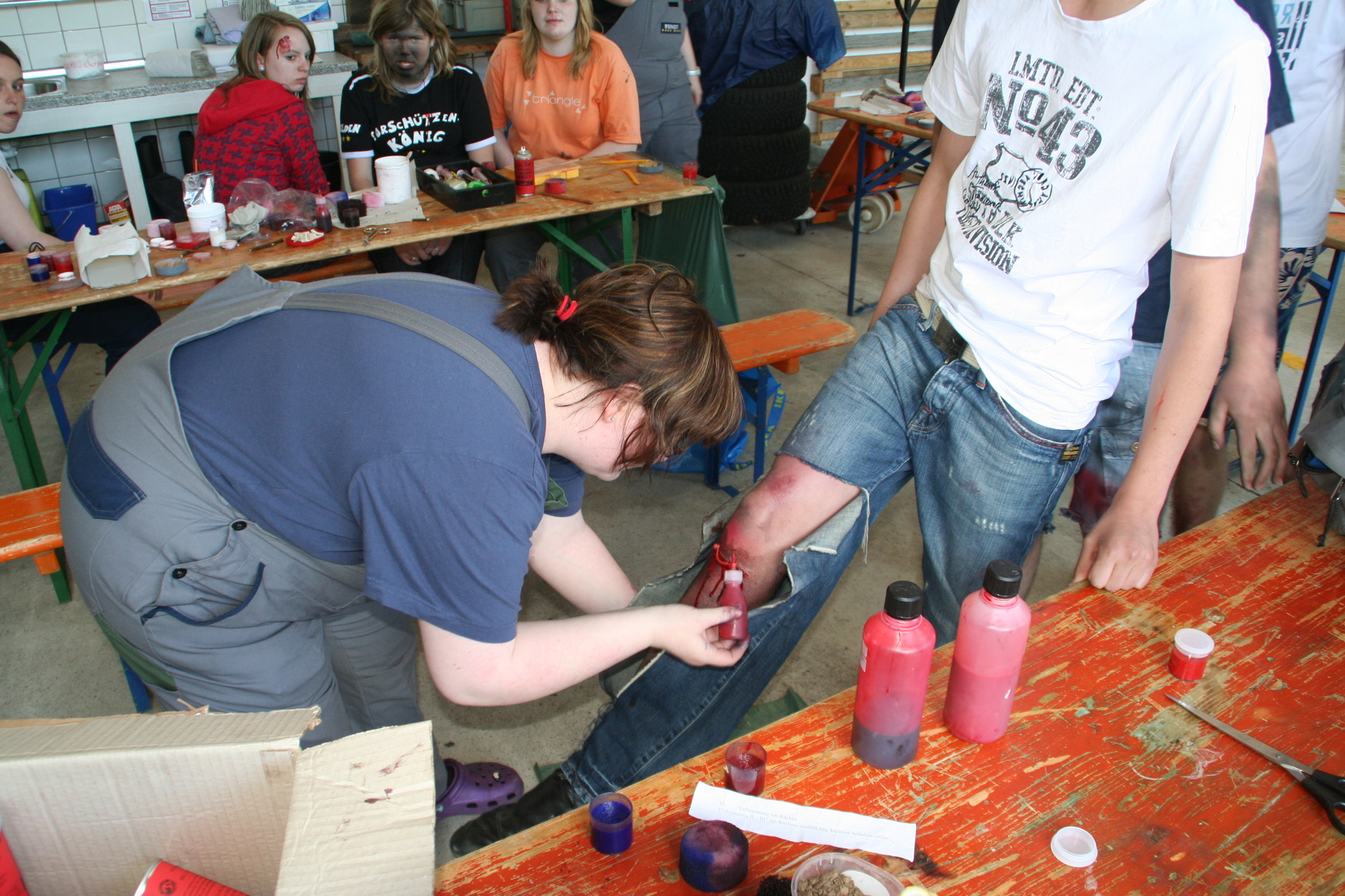 Nach einer fast dreistündigen Arbeit der RUD-Gruppe waren die Darsteller für die Übung vorbereitet. Sie wurden in den Hintergrund der Übung "eingeweiht" und auf ihre Rolle als Verletztendarsteller vorbereitet.
