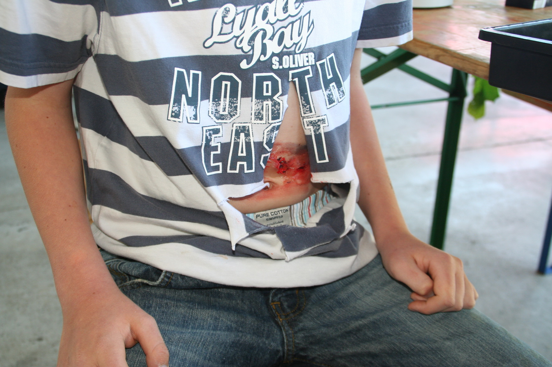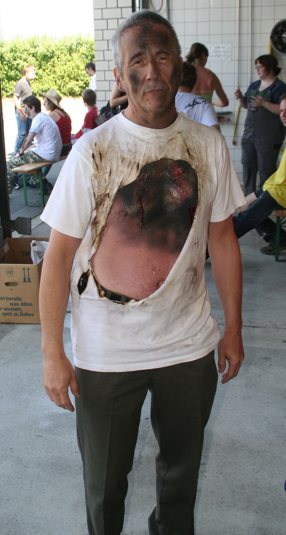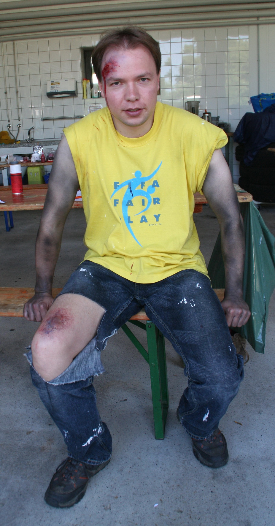 Nach einer fast dreistündigen Arbeit der RUD-Gruppe waren die Darsteller für die Übung vorbereitet. Sie wurden in den Hintergrund der Übung "eingeweiht" und auf ihre Rolle als Verletztendarsteller vorbereitet.