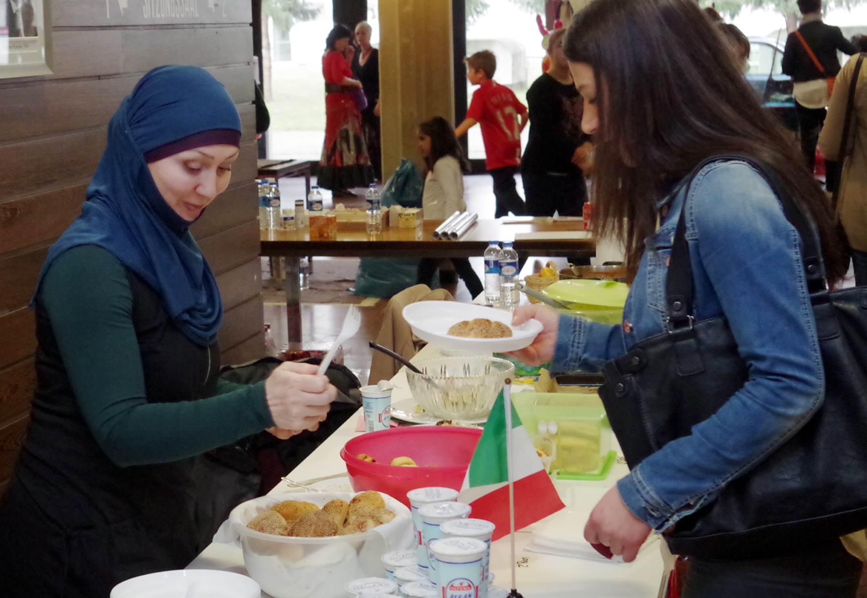 Es sind vor allem zwei Dinge, die die Menschen unterschiedlicher Kulturen verbinden: Musik und Essen. Das wurde auf dem Euskirchener Friedenstag einmal mehr deutlich. „Integration geht durch den Magen“, findet Norbert Weber vom Jugendmigrationsdienst. Sogar die leitenden Mitarbeiter der Kreisverwaltung machten dabei mit. Manfred Poth, Allgemeiner Vertreter des Landrats, Josef Weingarten, Geschäftsführer des Jobcenters EU-aktiv, und weitere Kollegen backten den ganzen Tag frische Pizza. Auf einer langen Tafel war ein internationales Büfett aufgebaut. „Es gibt Essen zum Beispiel aus der Türkei, Sri Lanka, Indien und Afrika“, so Nevin Sezgin.
