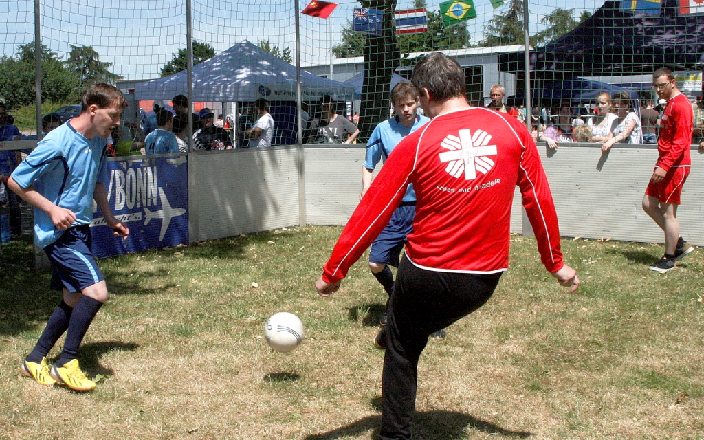 Integration und Teilhabe ist das Motto des Tages, und nirgendwo wurde dies bei der 9. Auflage deutlicher als beim bei den Besuchern und Aktiven besonders beliebten Kleinfeld-Soccerturnier. Wer hier die meisten Tore schießt, ist schlicht der Sieger – ob das Team aus Menschen mit oder ohne Behinderung besteht, ist egal. Neun Mannschaften waren in diesem Jahr mit dabei, die für die Spiele Ländernamen teilnehmender Mannschaften der aktuellen Frauenfußballweltmeisterschaft in Kanada trugen. Schließlich ist auch Frauenfußball, verglichen mit der Tradition der Männermannschaften, eine vergleichsweise junge Form gelungener Integration.