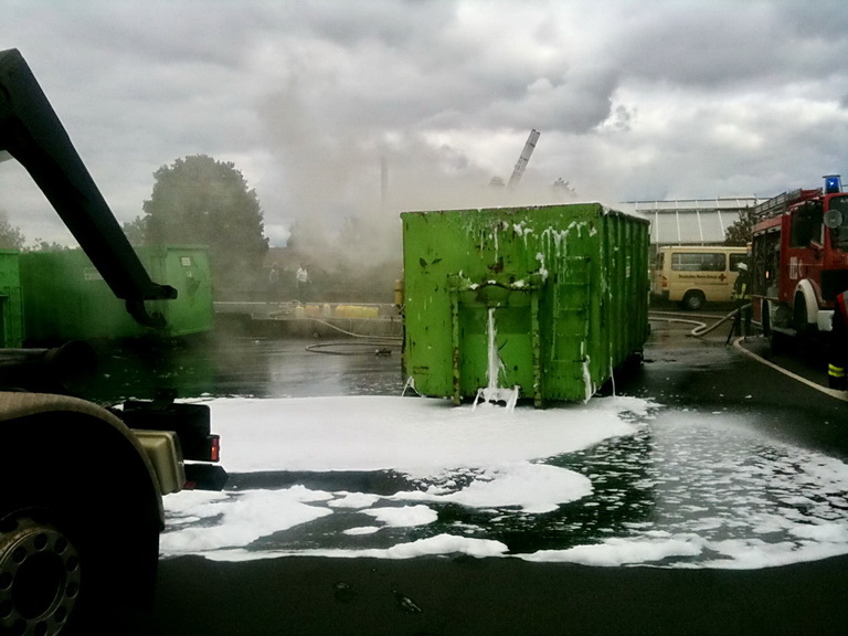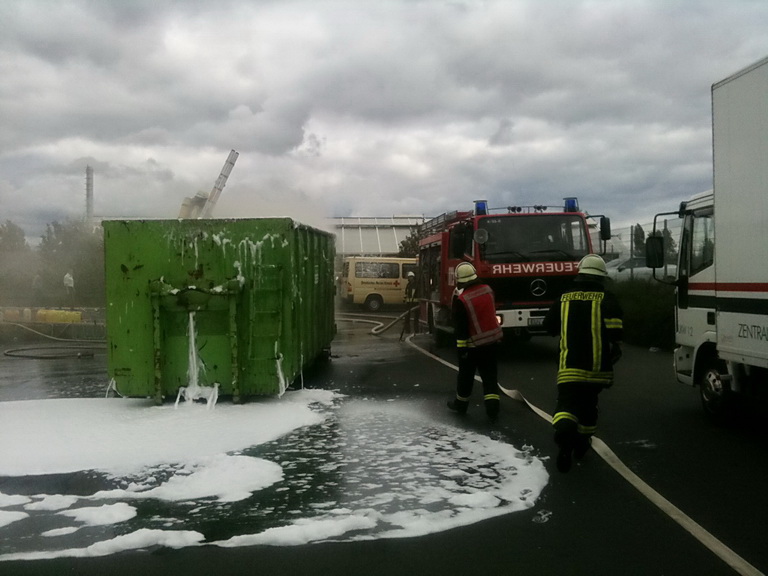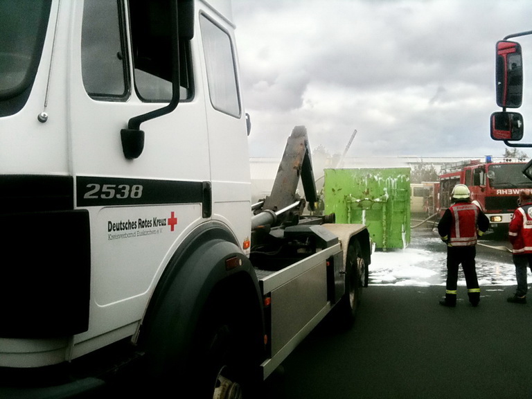 Am frühen Sonntagmittag brannte ein Müllcontainer im Euskirchener Industriegebiet. Das Rote Kreuz wurde mit dem Wechselladerfahrzeug zur Unterstützung der Feuerwehr angefordert.