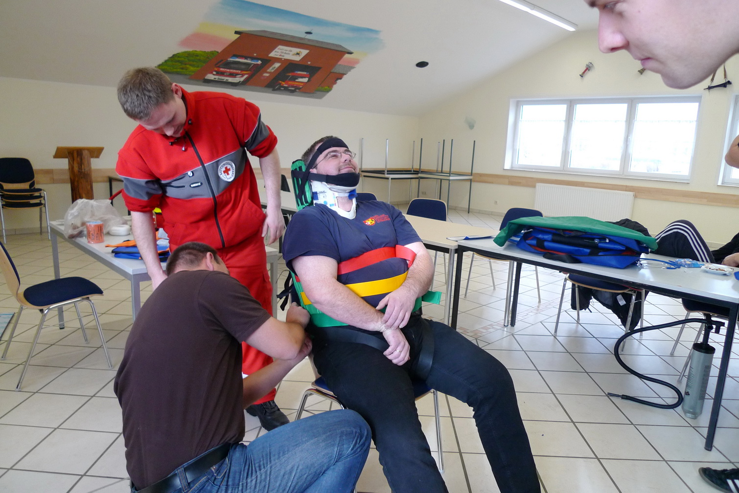 ... besonders in einem Einsatz! Dafür ließen sich am Sonntag Feuerwehrfrau und -männer der Löschgruppe Palmersheim das Einsatzmaterial des Rettungsdienstes zeigen und erklären. Im Einsatz kann man dann Hand in Hand arbeiten...