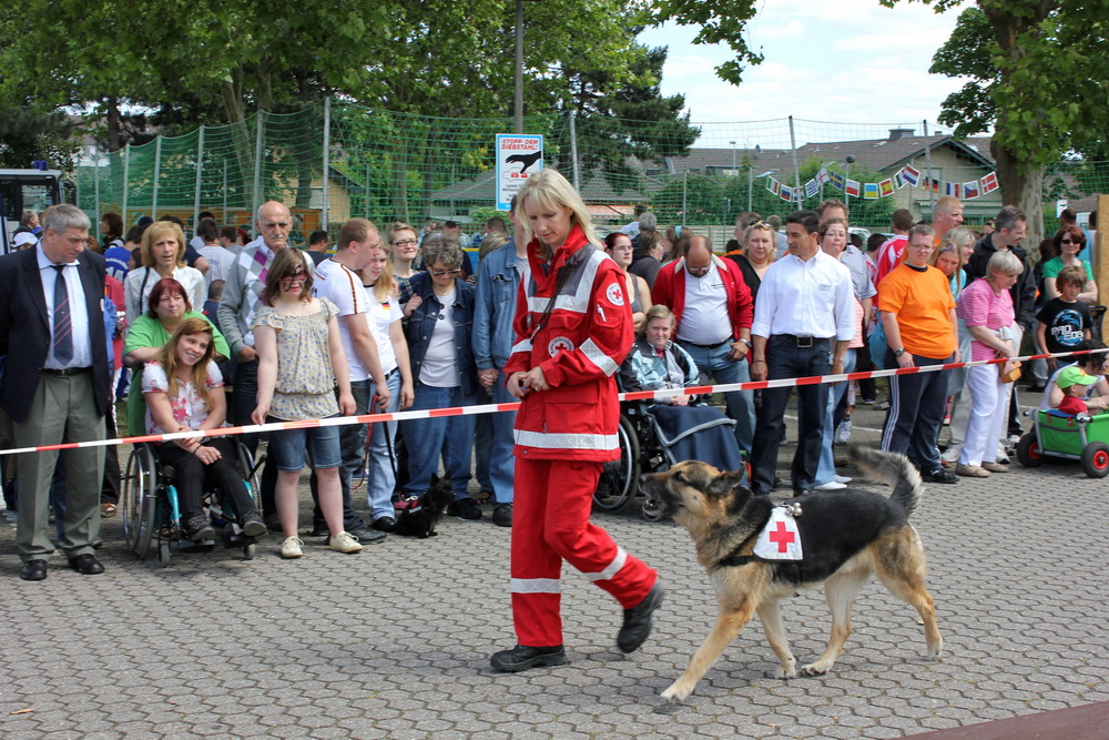 Kreis Euskirchen – Schon auf dem Weg zum „Tag der Begegnung“ für Menschen mit und ohne Handicap rund um das Euskirchener Rotkreuz-Zentrum war es nicht zu überhören: Hier waren eine Menge Spaß, Lachen und auch Spannung mit im Spiel. Bereits zum sechsten Mal fand in diesem Jahr der vom Roten Kreuz im Kreis Euskirchen gemeinsam mit der Lebenshilfe Euskirchen und dem Euskirchener Kreissportbund ins Leben gerufene, bunte Familientag für Menschen mit und ohne Handicap statt. Der Tag der Begegnung geht zurück auf das Jahr 2006, als er anlässlich der Fußballweltmeisterschaft für Menschen mit und ohne Behinderung Premiere feierte.
