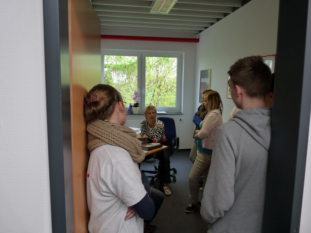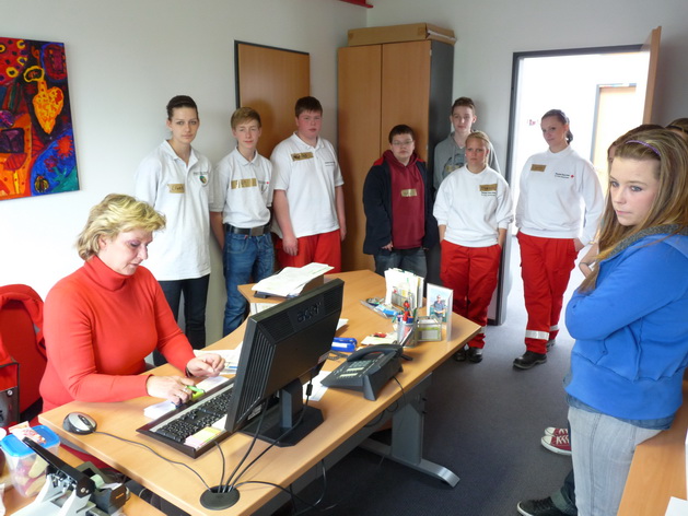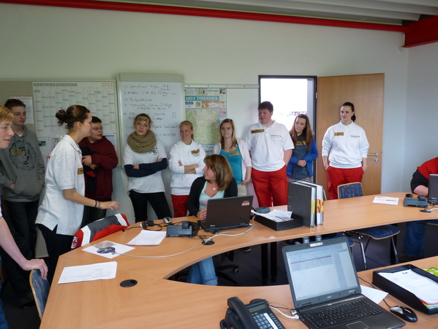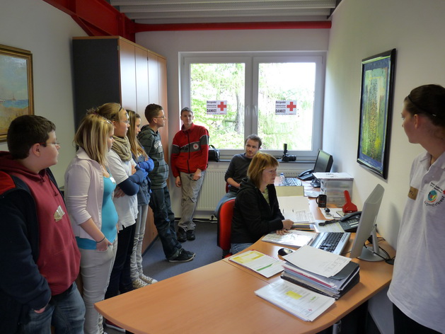 Als die Gewinner gekürt waren, die erfolgreich alle Tätigkeiten des Deutschen Roten Kreuzes gesammelt hatten, begaben wir uns weiter auf eine Erkundungstour durch die Büros, wo uns die Türen offen standen. Wir erfuhren einiges über die Berufe, die man auch beim Deutschen Roten Kreuz erlernen kann und hatten die Gelegenheit viele Fragen zu stellen.