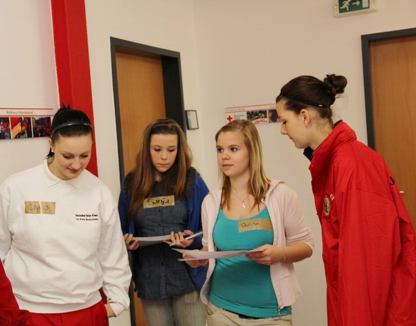 Da es aber noch viel mehr über das Deutsche Rote Kreuz zu erfahren gibt, starteten wir in Gruppen von jeweils drei Leuten eine Rally durch das Rotkreuzzentrum. Natürlich stand da auch ein Gewinn für die beste Gruppe in Aussicht, so war auch die Motivation sehr groß.