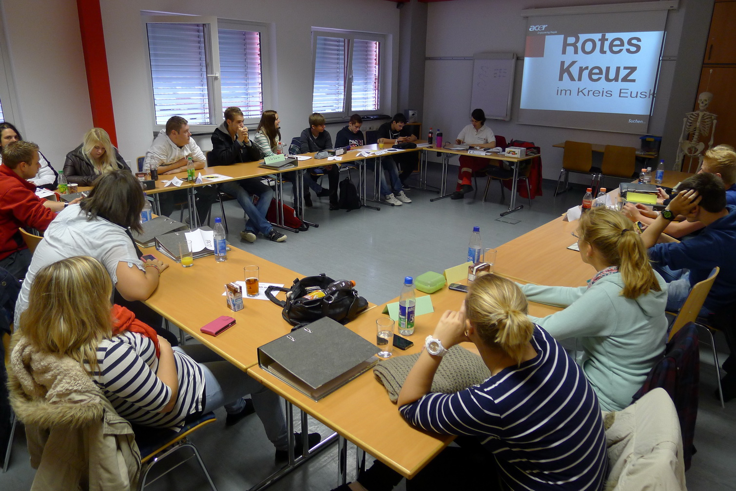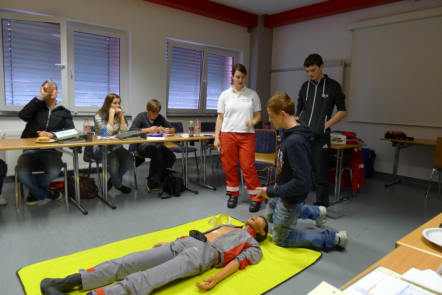 Jedes Jahr im Frühjahr und im Herbst treffen sich junge Rotkreuzler im Euskirchener Rotkreuz-Zentrum zu den Rotkreuz-Grundlagen-Seminaren. Erste Erfahrungen mit dem Sanitätsdienst im Roten Kreuz standen an diesem Wochenende auf dem Plan.