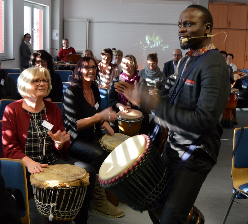 Mit den Bechertrommeln zum Abschluss gab man allen Beteiligten viel mit auf den Weg. War man bei den ersten Klängen der Bechertrommeln noch zögerlich mit der Bewegung der Hände auf dem Trommelfell, merkte man, wie eine unglaubliche Dynamik Oberhand gewann, und dieser Augenblick viel glückliche Freude und immense innere Kraft nach wenigen Sekunden vermittelte.