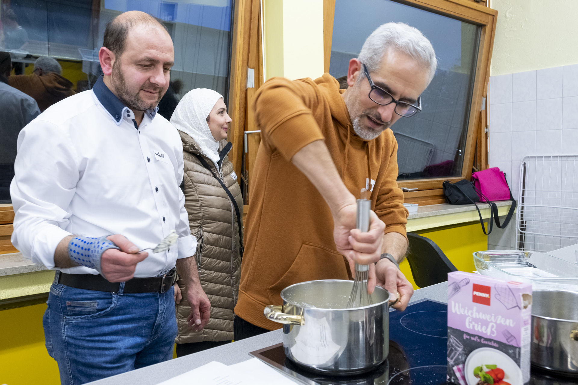 Im Gegensatz zu ihm wollten sich die Euskirchener Bene und Sunka Dafner von der libanesischen Kochkunst in unbekannte Gefilde entführen lassen. „Das Angebot hat uns sofort angesprochen und wir finden es interessant, die Küche anderer Nationalitäten kennenzulernen“, sagt Sunka Dafner während sie den Grießpudding anrührt.