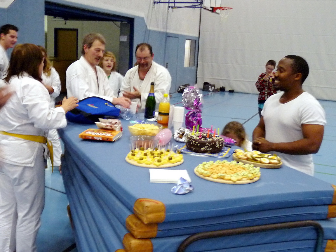 Die Karate-Abteilung des TVE Bad Münstereifel, wo er für die Dauer seines Aufenthaltes trainiert, hatte ihn mit einer kleinen Party nach dem Training überrascht und auf den Matten einen Geburtstagstisch mit selbstgebackenem Kuchen, anderen Leckereien und Kerzen gedeckt. „Als er nach Hause kam, leuchteten seine Augen und er sagte strahlend: »It was wonderful«“, freut sich auch Lilo Langen für ihren Gast.