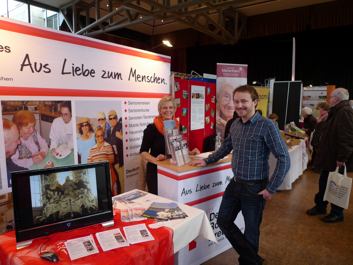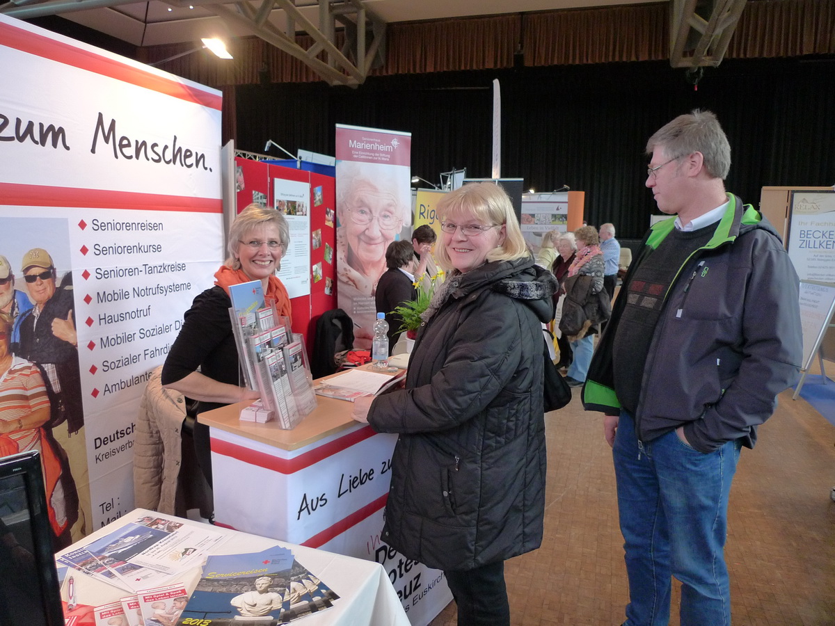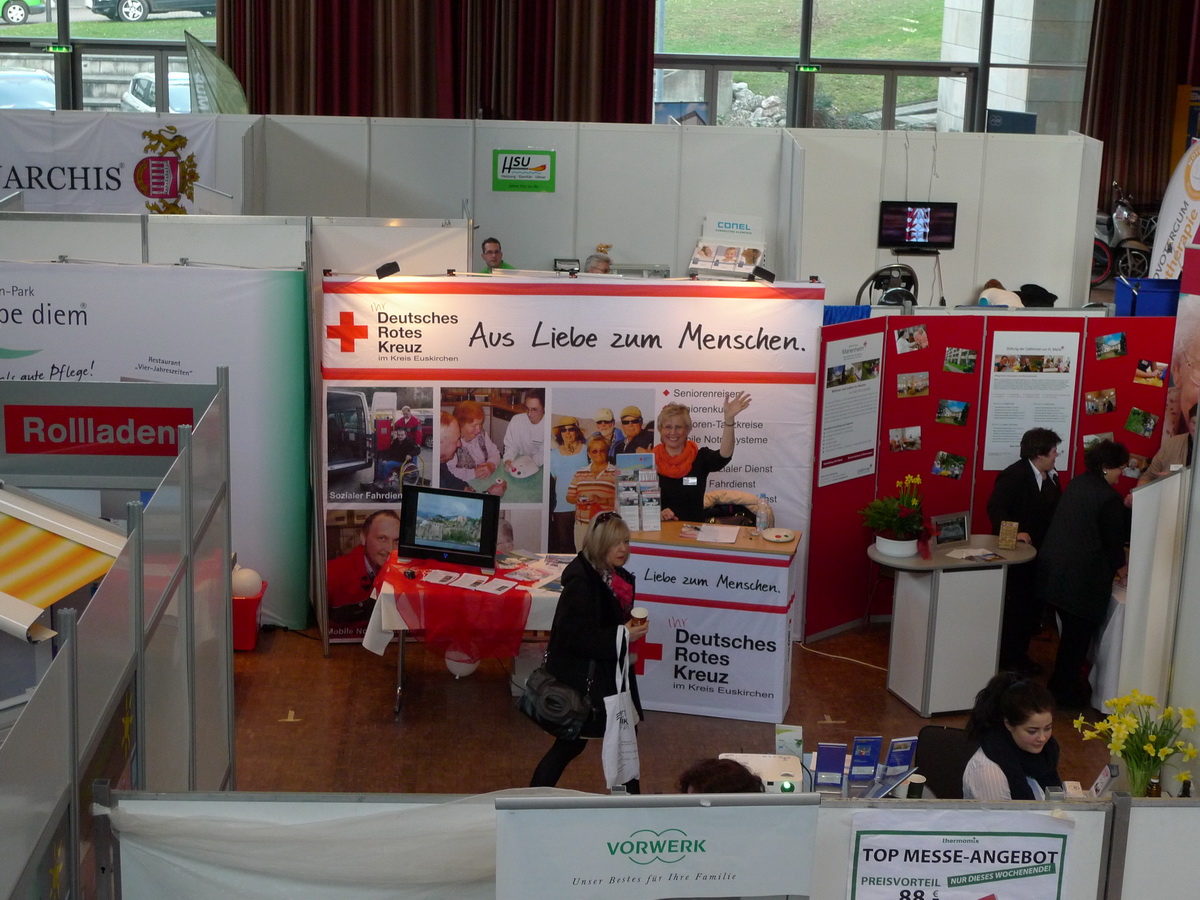 Das Rote Kreuz war dieses Jahr bereits zum vierten Mal mit ihrem Messe- und Informationsstand im Einsatz. Monika Dormagen, Michael Schmehler und Patrick Dost informierten die zahlreichen Messebesucher zu den Themen Seniorenreisen, Hausnotruf, Mobile Notrufsysteme und den vielseitigen Rotkreuz - Angeboten im Kreis Euskirchen.