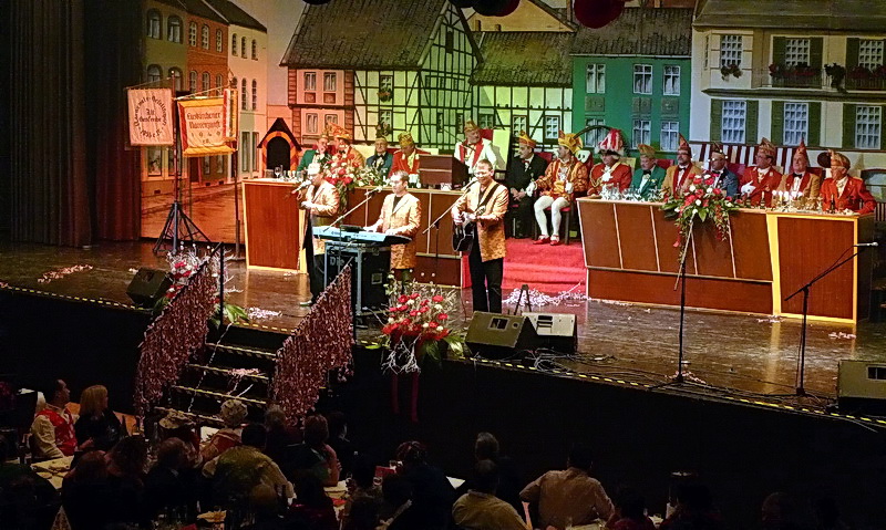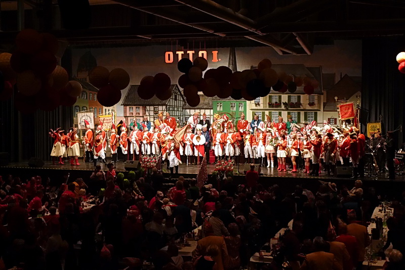 Über 600 Karnevalisten waren am vergangenen Samstagabend nach Euskirchen gekommen, um bei Ottos Inthronisation live mit dabei zu sein. Das Programm, das seit einigen Jahren von den vier kernstädtischen Euskirchener Karnevalsgesellschaften gemeinsam organisiert wird, war klasse. Der Abend hatte und brachte das, was man gemeinhin im Karneval "Stimmung" nennt. Wenn auch nicht alles so lief wie ursprünglich geplant: Ferdi Pfahl, der Schultheiß und Ehrenpräsident der Euskirchener Prinzgarde, hatte seine liebe Mühe, die krankheitsbedingten Verspätungen der Auftrittskünstler zu überbrücken. Aber es gelang ihm mehr als gut - da merkt man 30 Jahre Bühnenerfahrung. . .