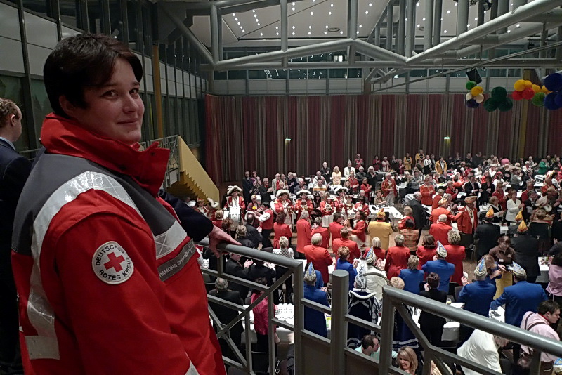 Das Rote Kreuz der Kernstadt ist natürlich auch bei dieser und anderen Veranstaltungen dieser Art immer dabei, um gemeinsam mit den Kameraden des Löschzuges Zentrum der Kreisstadt-Feuerwehr die Sicherheit der Besucher zu gewährleisten. Zum Glück blieb es bei zwei kleineren Behandlungen. Stephan Schmitz, Leiter vom Dienst bei diesem Rotkreuz-Einsatz, sagte am Schluss: "Wir wünschen Prinz Otto und seinen Jecken eine wunderschöne Session!"
