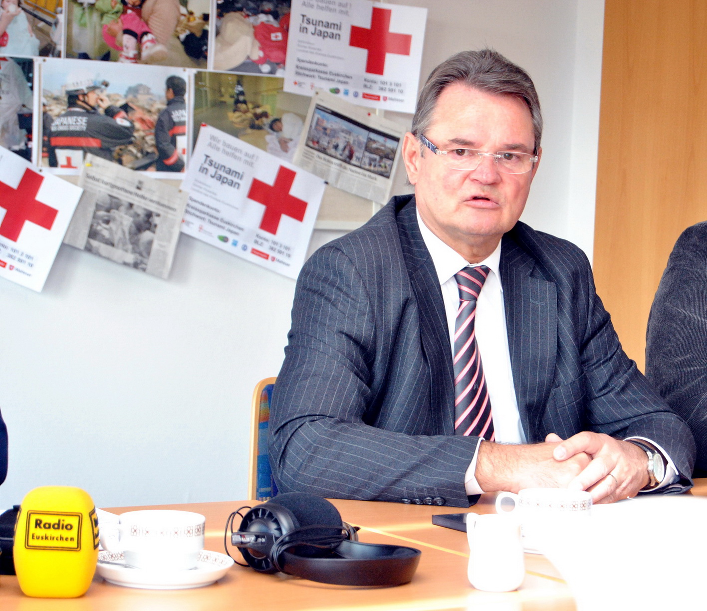 Landrat Günter Rosenke übernimmt – wie bereits vor sieben Jahren – die Schirmherrschaft über die Aktion „Hilfe für Japan“. Bei der Pressekonferenz zur Vorstellung des Projektes zeigte er sich aufrichtig betroffen von den Ereignissen in Japan und hob hervor: „Auch in einem so hochtechnisierten Land wie Japan, ist es nötig, dass Menschen Menschen helfen.“